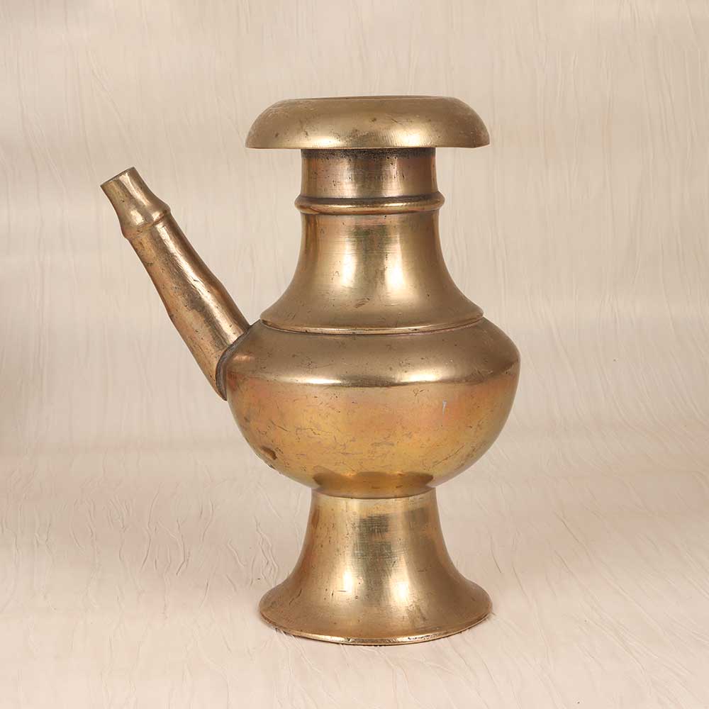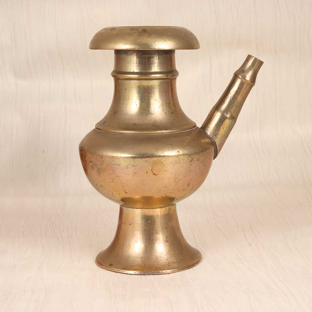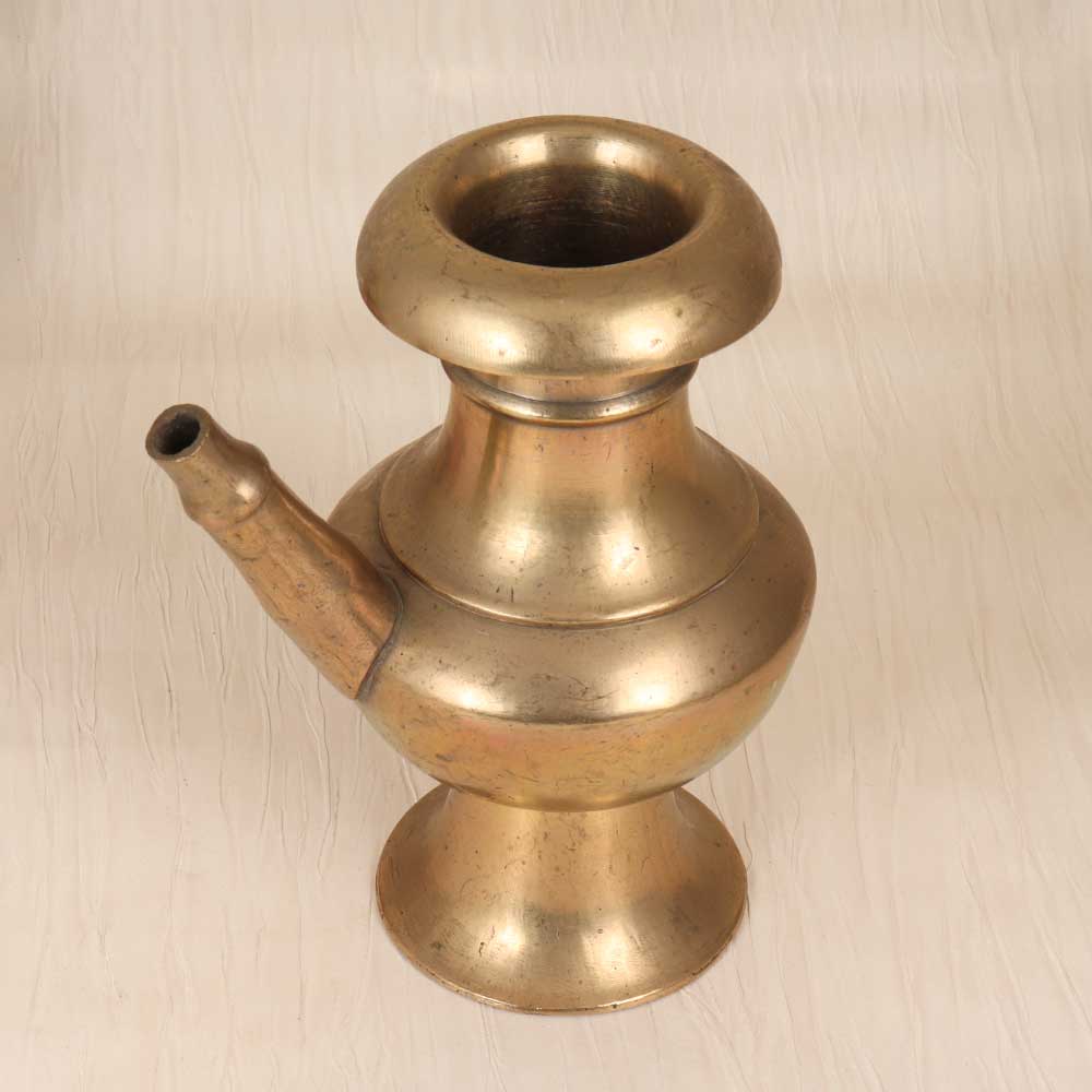 Add a touch of sacred tradition to your home with this vintage brass holy water pot. Crafted from brass in a classic plain brown finish, this pot allows you to store and pour holy water with elegance and reverence. With its vintage design and elegant spout, this pot is ideal for keeping holy water in your home and using it for blessings and other sacred purposes. The brass material gives it a special, antique look that nods to ancient tradition. Whenever you pour holy water from this vessel, you'll do so with grace and reverence. For those looking to incorporate religious symbols into their home, this vintage brass pot is ideal. Not only is it visually striking, but it also enables traditional holy water rituals. Friends and family will be moved by your commitment to spiritual traditions when they see this special vessel sitting prominently in your home.