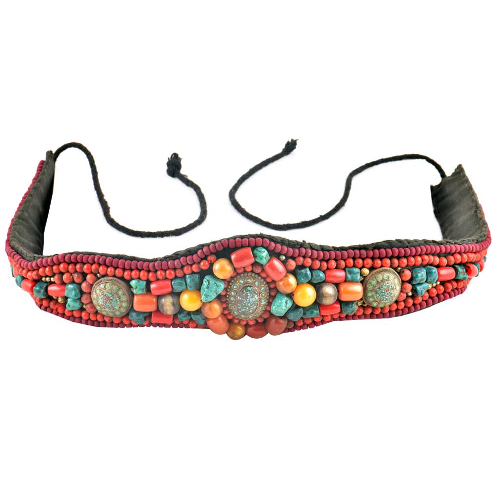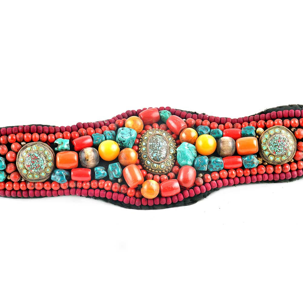 Himalayan Coral and Turquoise Beaded Belt