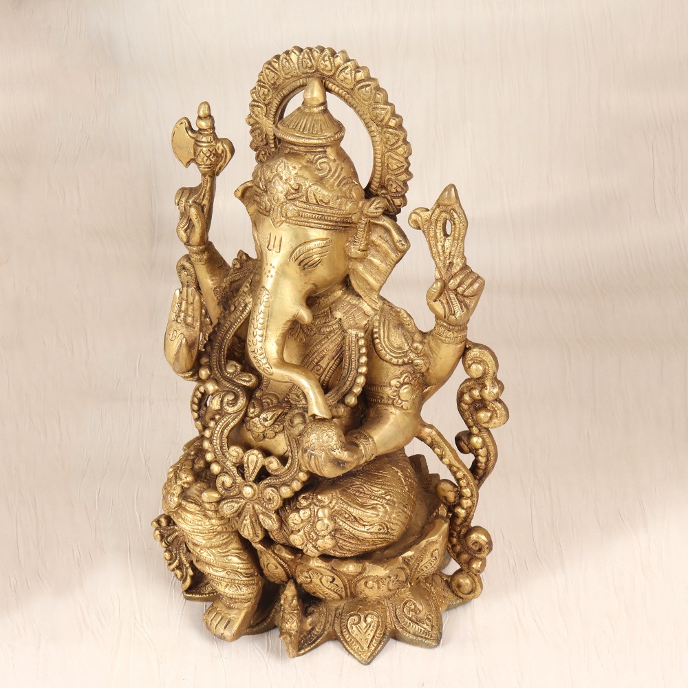 Unlock the power of divine protection and prosperity with the Brass Lord Ganesha Statue, a stunning representation of the revered Hindu deity. Crafted with meticulous attention to detail, this captivating figurine will elevate the energy and ambiance of any space, inviting blessings and good fortune into your life. As the remover of obstacles and the bringer of success, Lord Ganesha is a beloved figure in Hindu mythology. By displaying this exquisite brass statue, you'll be inviting the divine energy of this revered deity into your life, opening the doors to new opportunities, prosperity, and the removal of any challenges that may stand in your way. Whether you're a devotee of Hindu spirituality or simply someone seeking to add a touch of cultural richness and meaning to your surroundings, the Brass Lord Ganesha Statue is a must-have addition to your home or office. Embrace the timeless beauty and profound symbolism of this remarkable work of art and let it transform your space into a haven of tranquility, protection, and abundance.