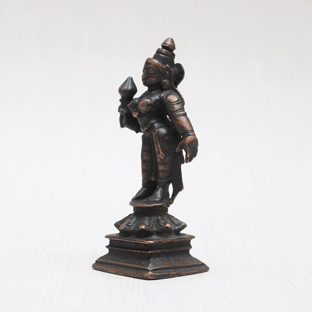 Buy Hindu Goddess Parvati Copper Statue online which is a stunning work of art meticulously handcrafted by highly skilled Indian artisans using high-quality copper. This awe-inspiring statue captures the divine essence of Goddess Parvati in a timeless vintage style finish. With its eye-catching detailing and intricate design, this statue is an ideal addition to your prayer room at home, office, restaurant, cafe, or shop. Its spiritual significance makes it a perfect item for exhibitions, decorations, and collections. Whether adorning a temple for worship or serving as a focal point in your sacred space, this statue radiates devotion and grace. Looking for a thoughtful gift? This elegant copper statue is perfect for surprising your loved ones on special, festive, or auspicious occasions. Explore the rich collection of god idols online and discover the allure of small god idols for your prayer room. Embrace the divine presence of Goddess Parvati and elevate the ambiance of your surroundings with this extraordinary masterpiece.