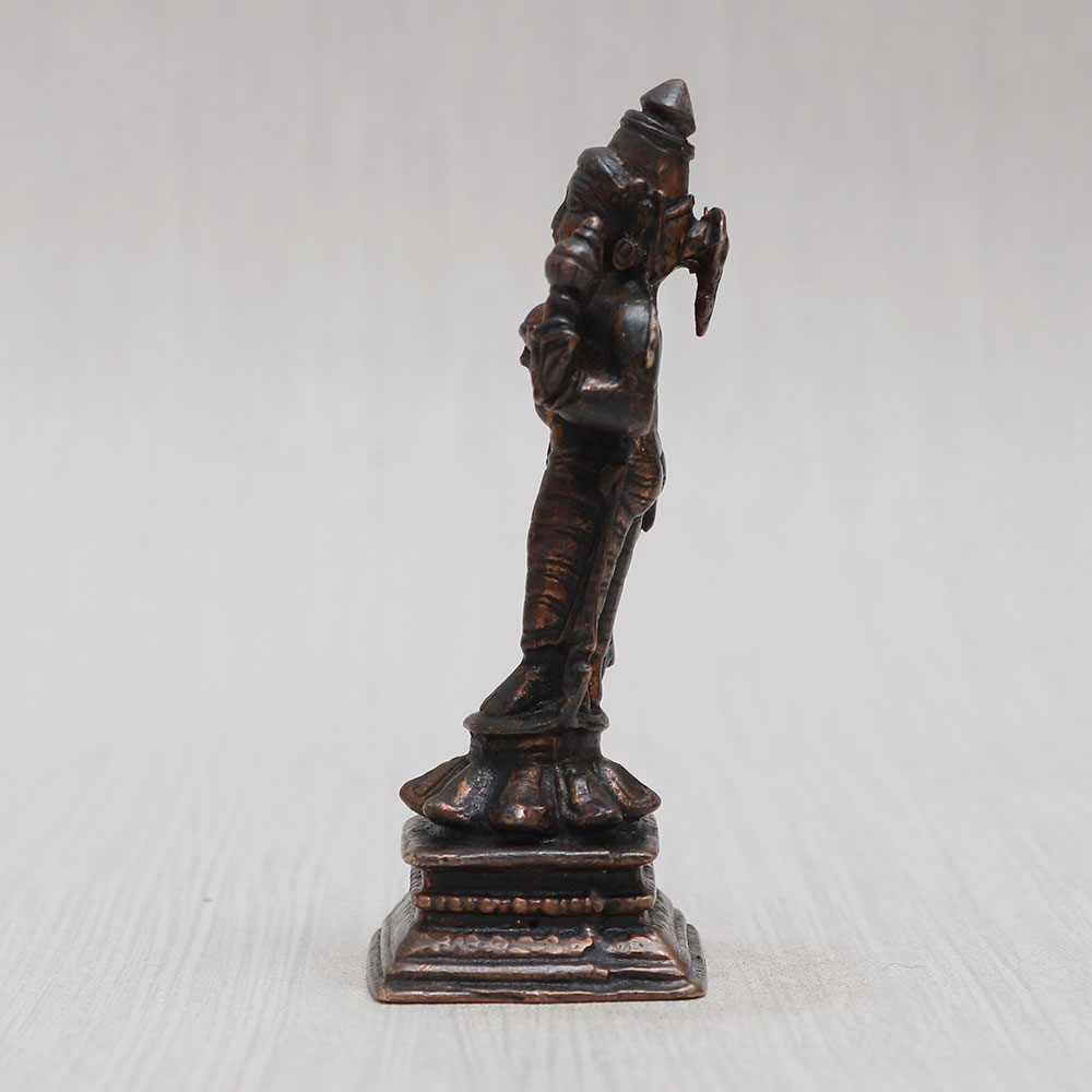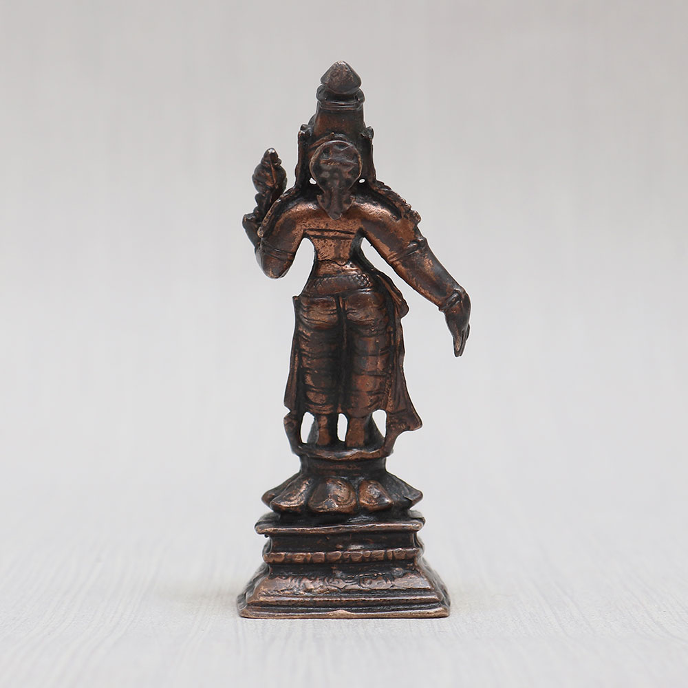 Buy a Hindu Goddess Parvati Copper Statue that is a magnificent creation by highly skilled and experienced Indian craftsmen. Crafted from high-quality copper, this standing statue boasts a vintage-style finish, adding a touch of elegance to any space. The attention to detail is awe-inspiring, making it a captivating item for exhibition, decoration, or collection. Ideal for your prayer room at home, office, restaurant, cafe, or shop, this small god idol for the prayer room radiates spiritual energy. Its divine aura makes it the perfect centerpiece for worship in a temple. Looking for a thoughtful gift? This statue is an excellent choice for your loved ones on special, festive, or auspicious occasions. You can now conveniently buy idols online and bring home this stunning copper Goddess Parvati statue, a symbol of grace, strength, and devotion.