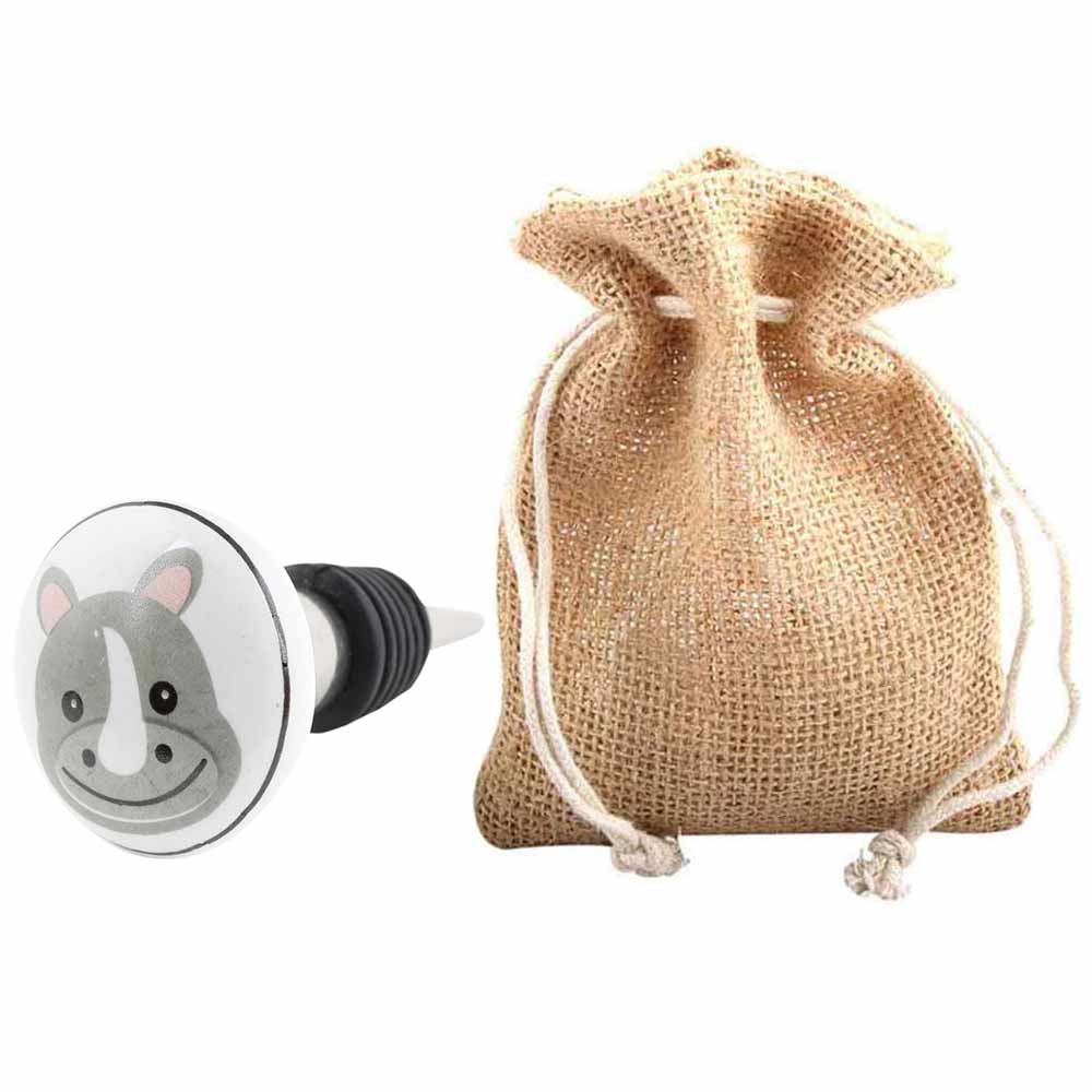 Hippo Flat Ceramic Wine Bottle Stopper. Zinc Alloy Wine Bottle Stopper with Attractive Jute Bag Packaging.