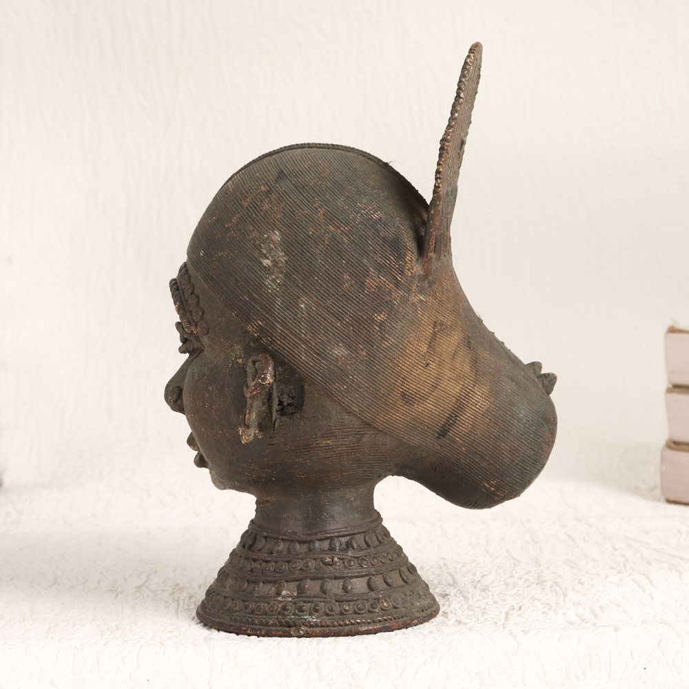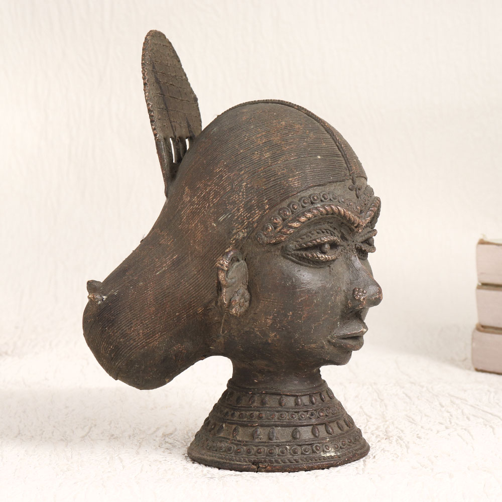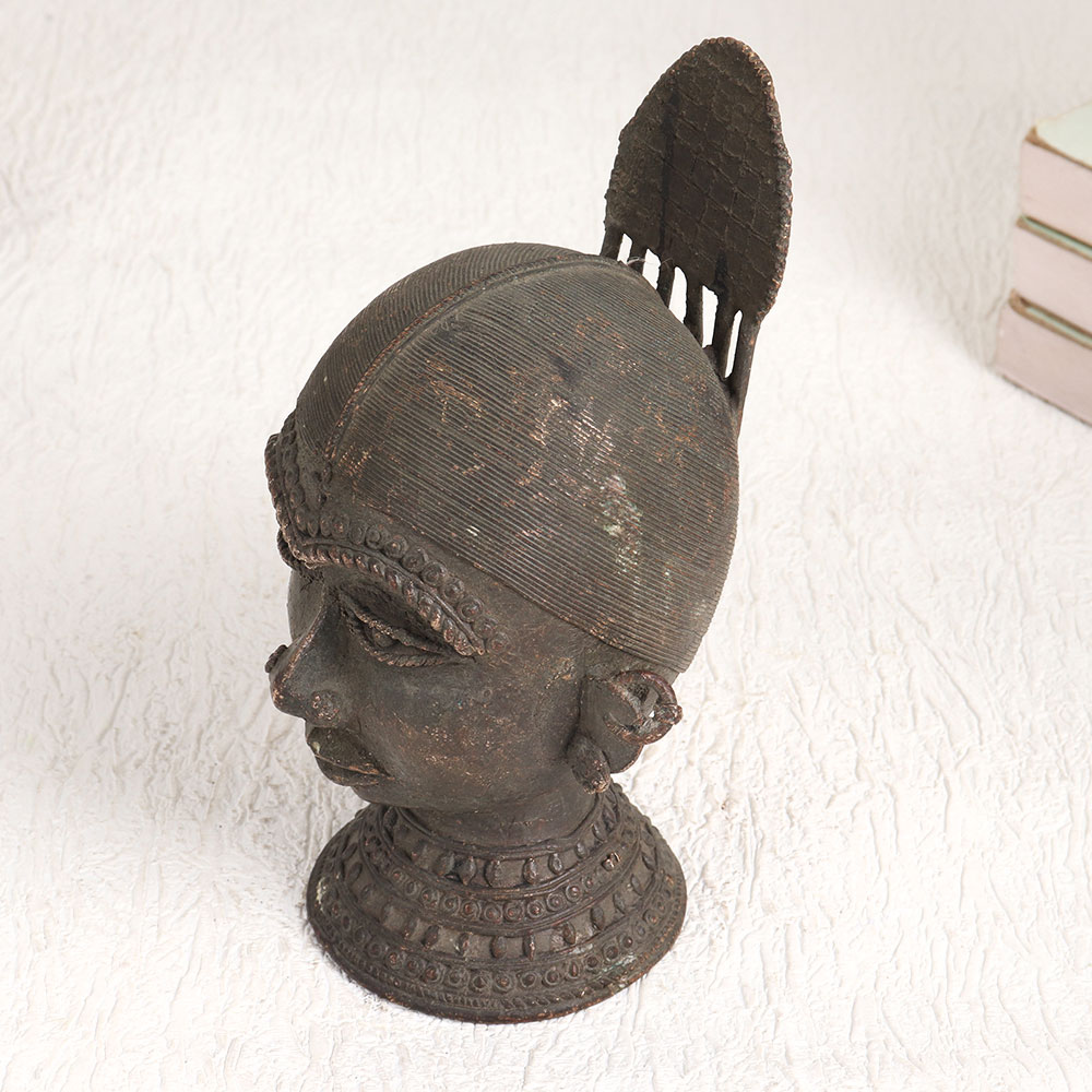 Enhance the spiritual ambiance of your space with this exquisite Brass Goddess Parvati Head Statue. Handcrafted by professional Indian artisans hailing from the culturally rich region of Odisha, this stunning piece embodies the essence of divine beauty and craftsmanship. Cast in high-quality brass and finished with an antique brown patina, this Parvati statue showcases exceptional attention to detail. The intricate design captures the serene and compassionate expression of Goddess Parvati, the divine consort of Lord Shiva. Versatile in its application, this statue can grace your home, office, restaurant, hotel, cafe, or shop, serving as a captivating piece of decor or an object of devotion within a prayer room. Its timeless elegance makes it a valuable addition to vintage collections or exhibition displays. As a thoughtful gesture, this brass Parvati head statue can be presented as a cherished gift to your family, friends or relatives on special, festive, or auspicious occasions, symbolizing blessings, beauty, and spiritual serenity. Bring home a piece of India's rich cultural heritage with this remarkable artwork, radiating grace and elegance in every detail.
