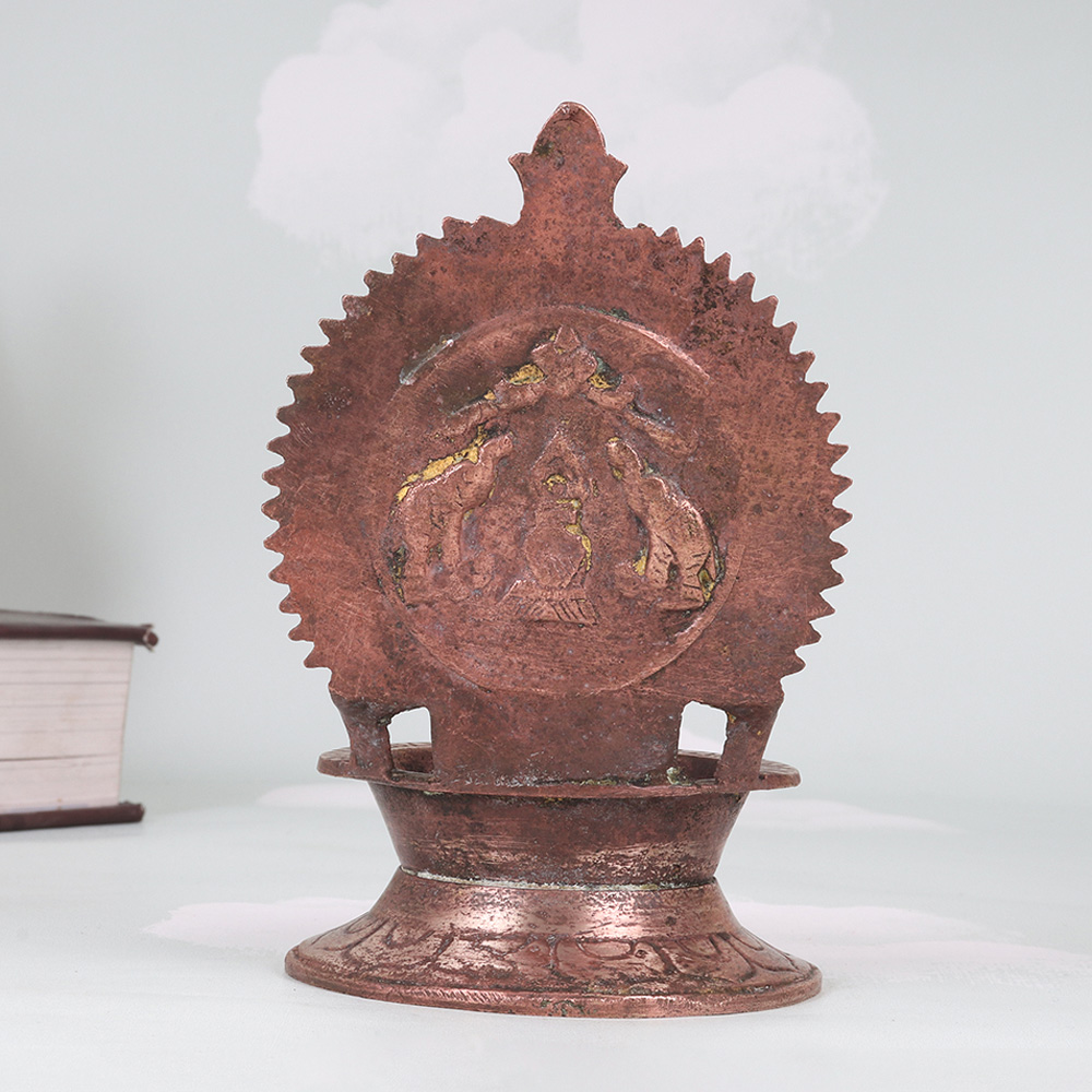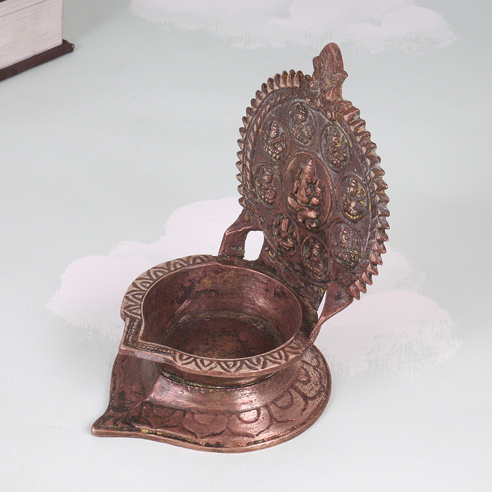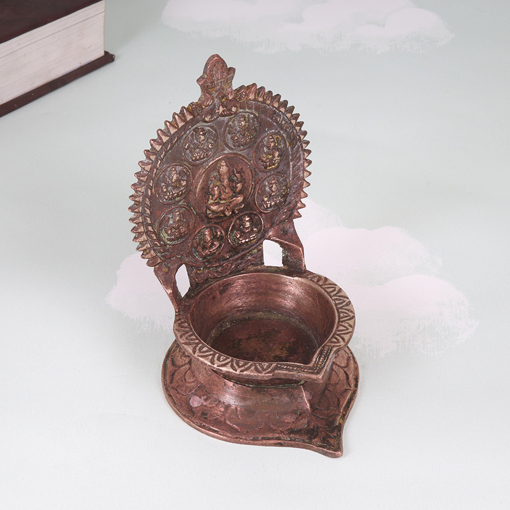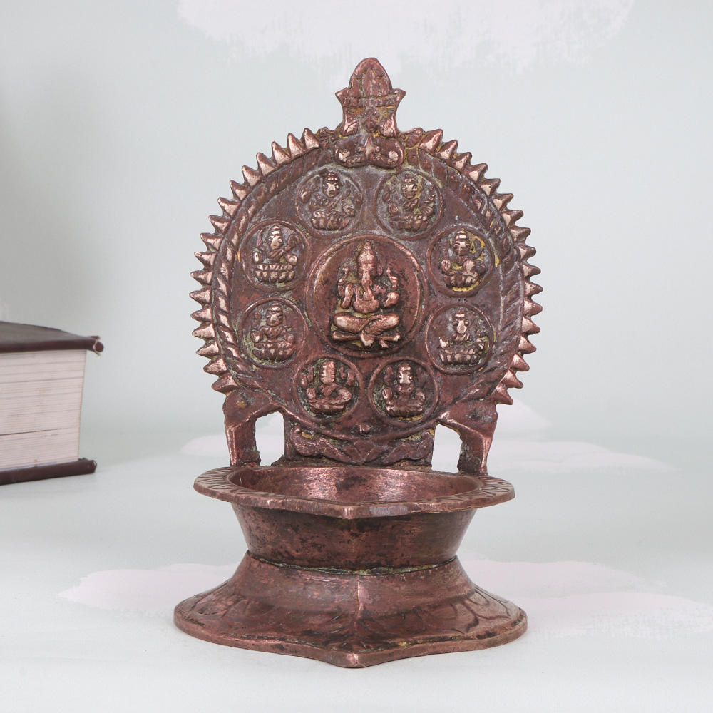 Infuse your space with the positive energy of the Goddess Lakshmi using this exquisite brass oil lamp. Featuring the iconic Gaja Lakshmi design - the goddess seated atop her elephant mount - this lamp is a powerful symbol of prosperity, abundance, and divine blessings. Crafted with meticulous attention to detail, this lamp will captivate and inspire you during your daily rituals and meditation practice. Light the wick and let the gentle flickering flames transport you to a state of deeper calm and clarity, as you connect with the divine feminine energies. The clean-burning oil creates a soft, mesmerizing glow, filling your space with a warm, welcoming ambiance. Whether placed on your altar, mantelpiece, or side table, the Gaja Lakshmi oil lamp will become a treasured centerpiece, radiating positive energy throughout your home. Its classic Indian art design makes it a beautiful addition to any décor, from modern minimalist to traditional. Treat yourself or a loved one to this stunning piece of South Indian art. The Gaja Lakshmi oil lamp will inspire your spiritual journey, while elevating the atmosphere of any room. Experience the timeless allure of this brass lamp and invite prosperity, abundance, and enlightenment into your life.