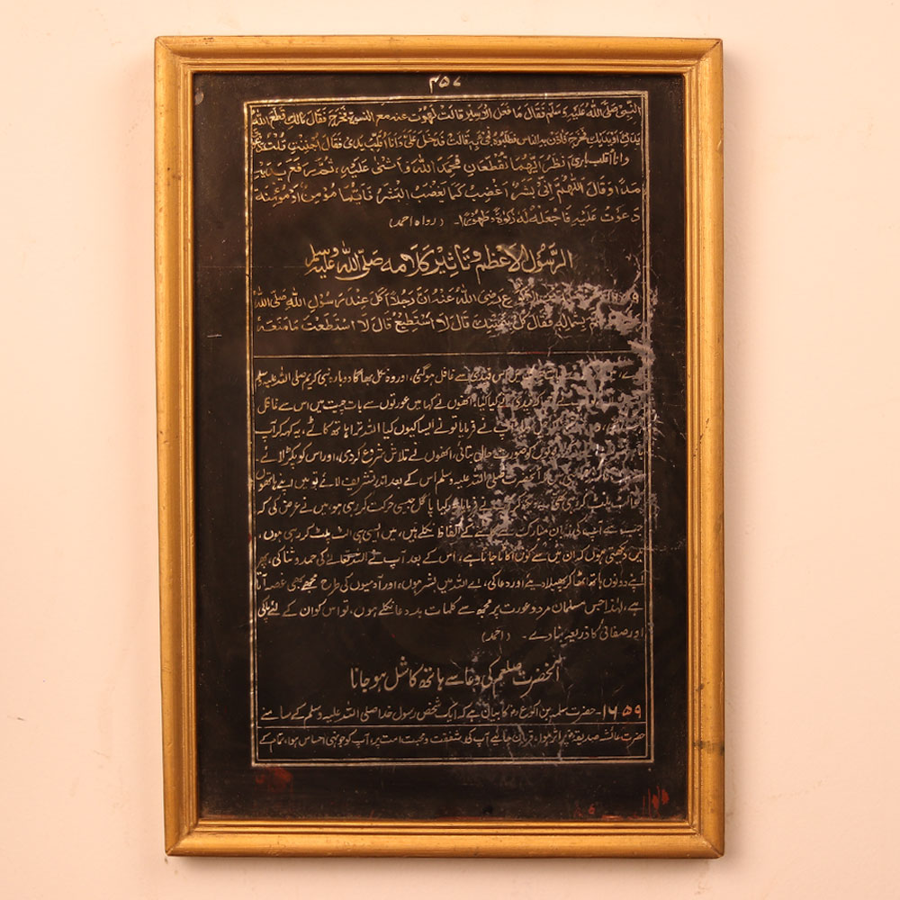 - Surrounded by calligraphic Islamic scripture