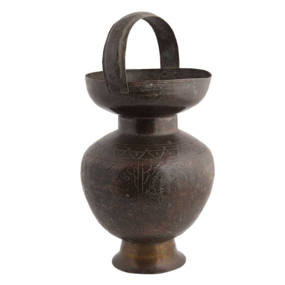 The beautiful and amazing Vintage holy pot comandel with carving work has withstood the testimony of time. The beautiful craftwork inscribed on the piece and rich patina add to the product's beauty. It makes the Vintage holy pot comandel with carving work a true investment for a heritage lover or for those who wish to contribute to safeguarding the nation's traditional crafts.