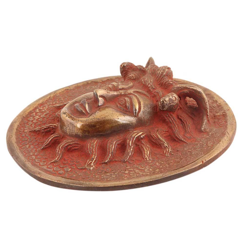 The handmade brass Holy Sun decorative plate signifies the source of life on earth - the Sun. With this amazingly crafted product by master craftsmen of India, you can instantly beautify your walls. It instantly leaves a bold and lasting impact. Since the Holy Sun decorative plate is handcrafted, it gives an authentic gift for a loved one. The product requires minimum attention and care. To clean it, use a soft cotton cloth. Avoid using harsh chemicals or abrasives on the surface.