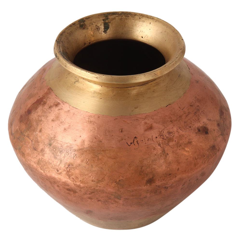Holy religious water pot with excellent workmanship. A perfect item to display or give as a gift to your loved ones. It is made of Brass and Copper.
