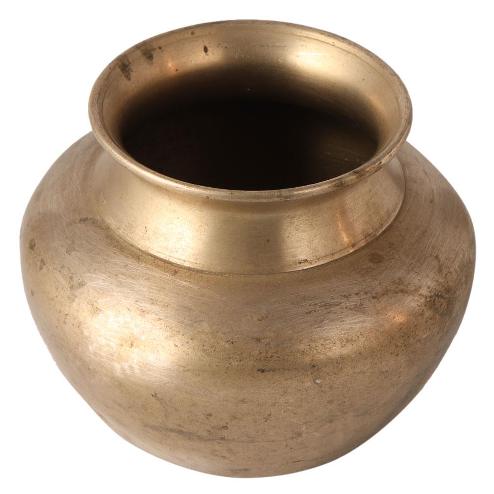 Holy water pot made of bell metal from the mountains of Himachal. This pot can be used to store Holy water. It has a plain shape and is made of brass metal alloy.