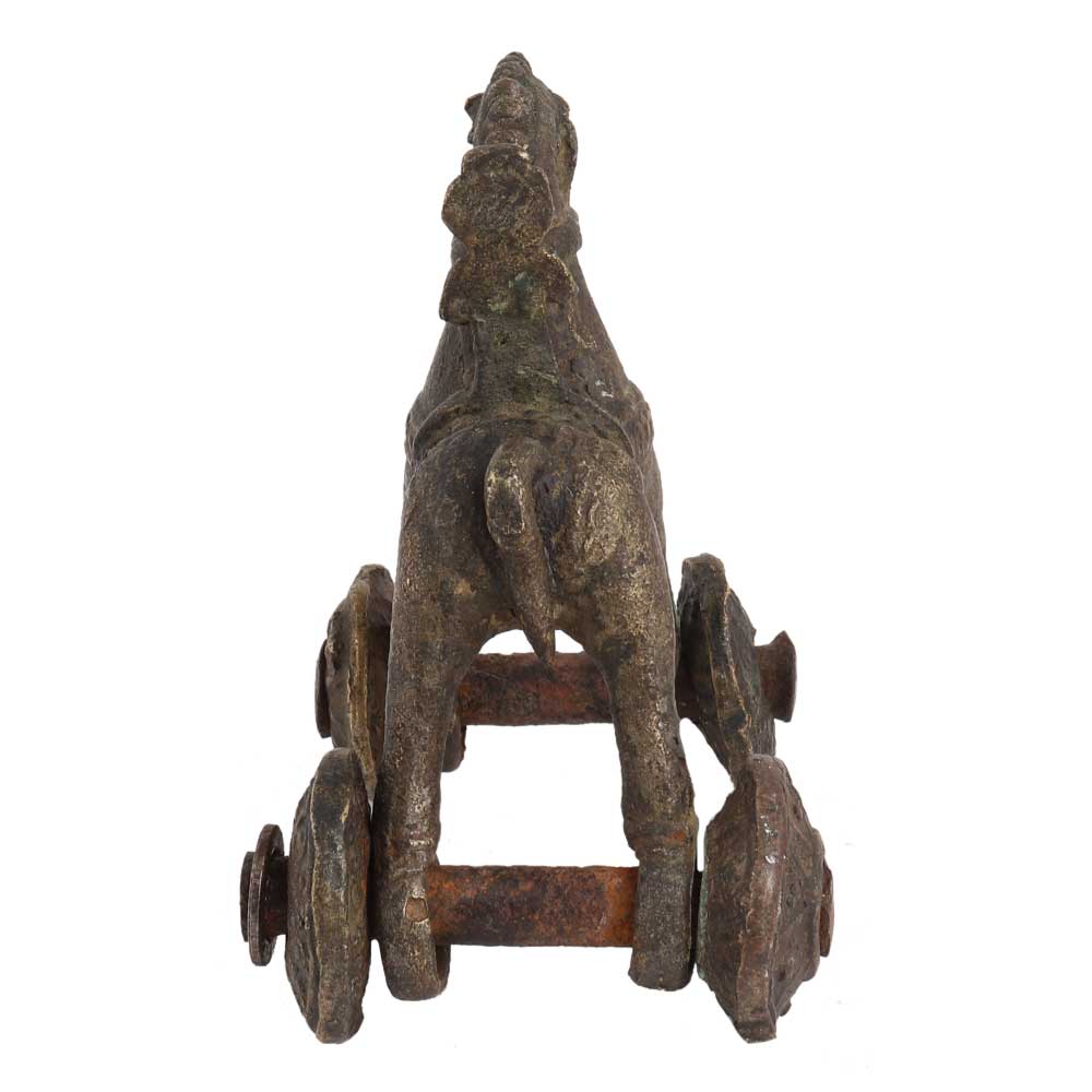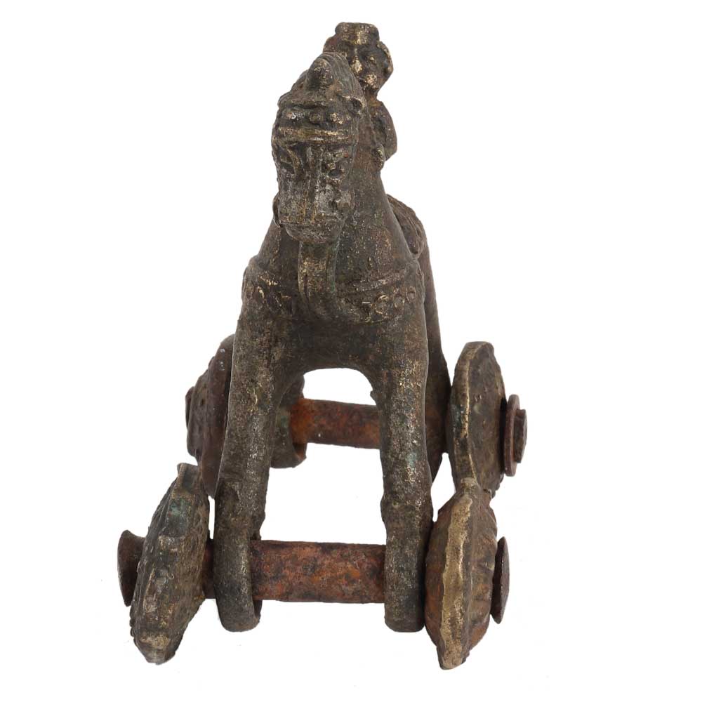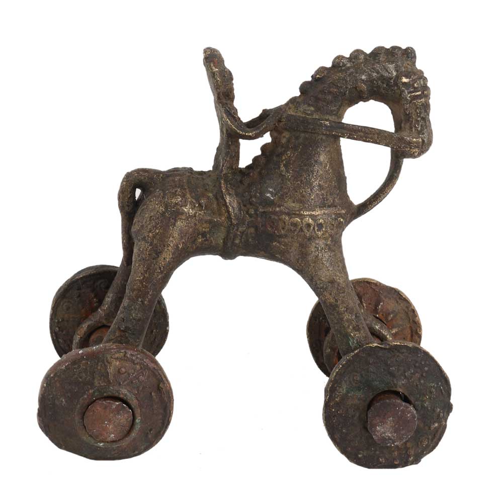 Home Decorative Old Temple Toy Of Horse With A Rider were roughly formed, rolling unevenly, but are nicely detailed figurine of a Toy Horse on wheel also know as pull Toy was used as a Toy and now used as a Collectors Office. Wedding gift, anniversary gift, souvenier,Home decoration and house warming gift.