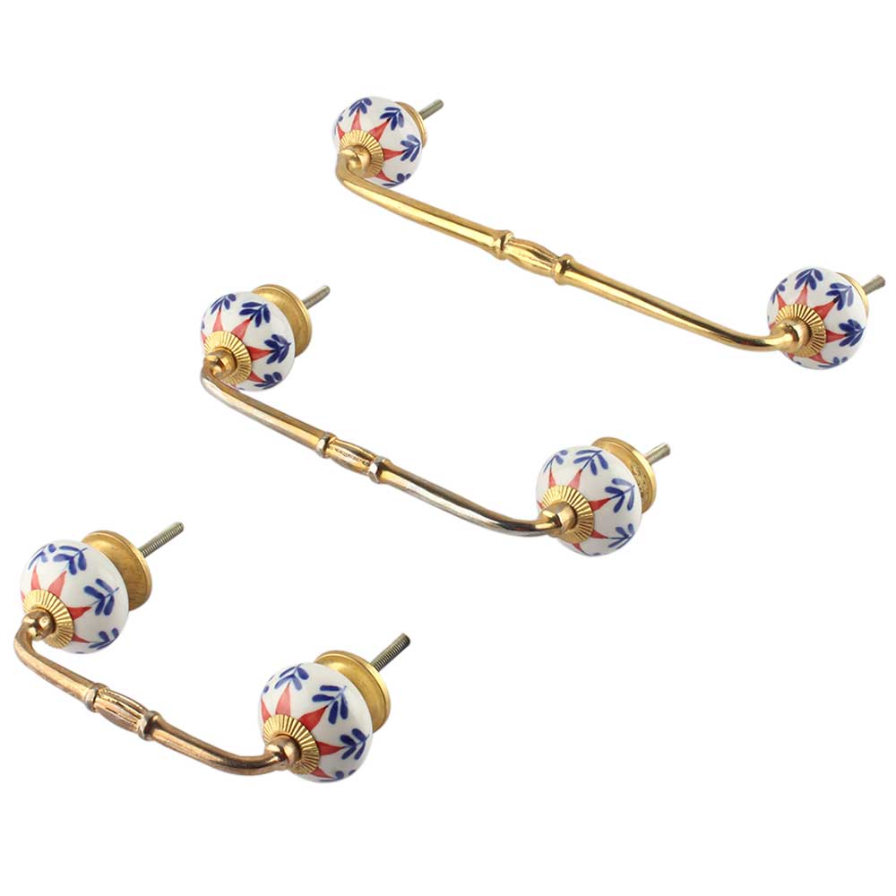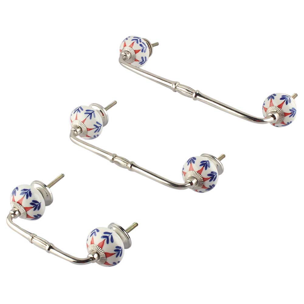 Hybiscus Red Flower Ceramic Bridge Handle. Ideal for Drawer, Dresser, Cabinet, Wardrobe, Cupboard and Almirah.