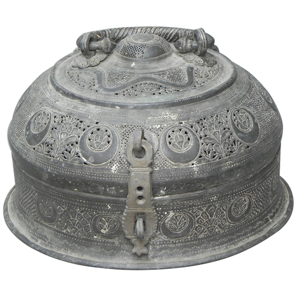 Vintage Hyderabadi Jewelry Box. The Box is One of Its Kind. This Box is the Craftsmanship of 1930'S. Very Fine Engraving and Jali Work are the Characteristics of Such Boxes.