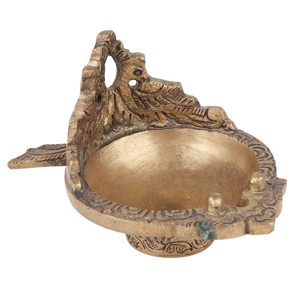 This handmade traditional Deep is made of brass with peacock figurine to add a decorative touch to plain oil lamp. This item is nicely carved with detailed finishing. Its unique design and durability make this item perfect for using at home or workplace.