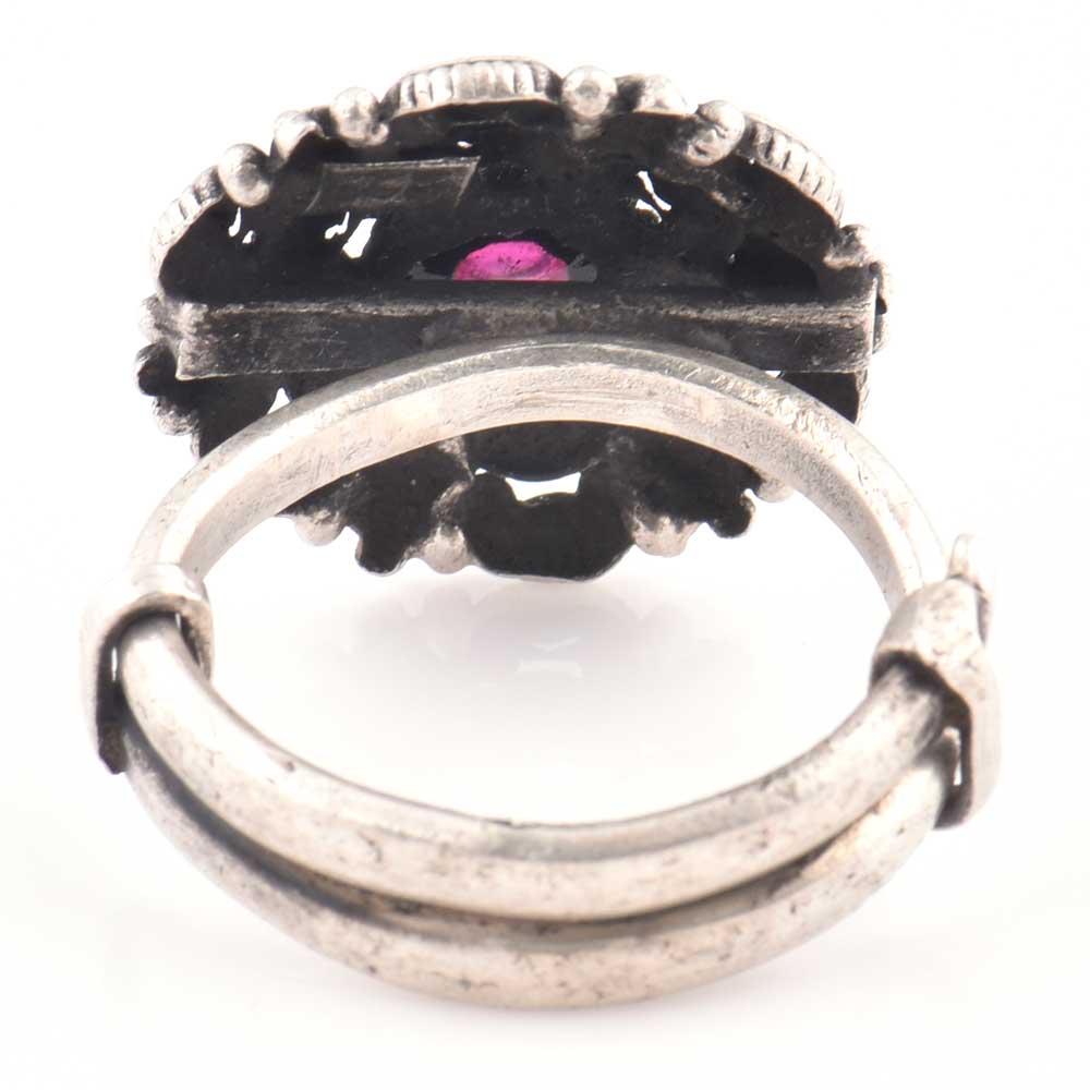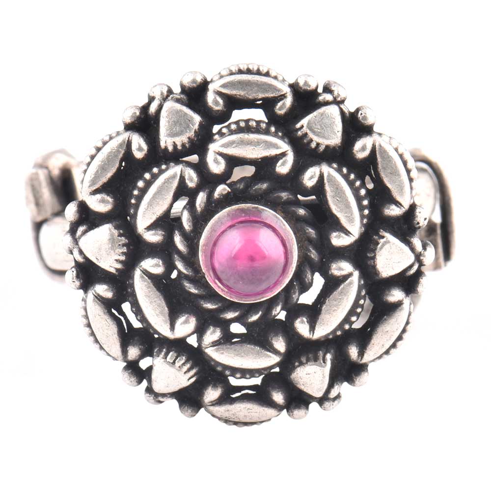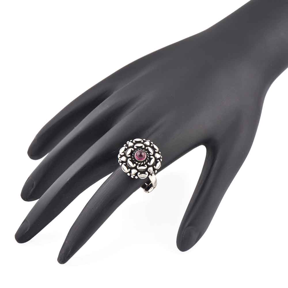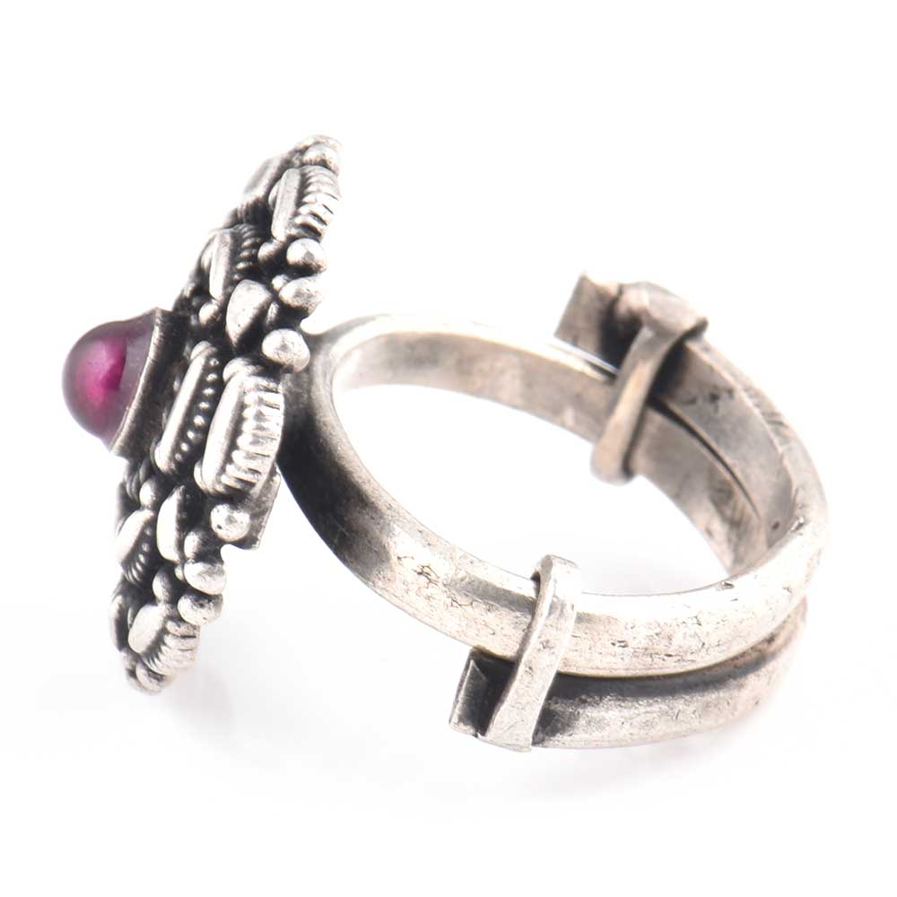 Hand made 92.5 Sterling Silver Ring with embossed motifs and amethyst stone gives a very formal look to Indian traditional wear. Gift it to your friend, wife, on your first date ,valentine day, Christmas or on new year's eve.