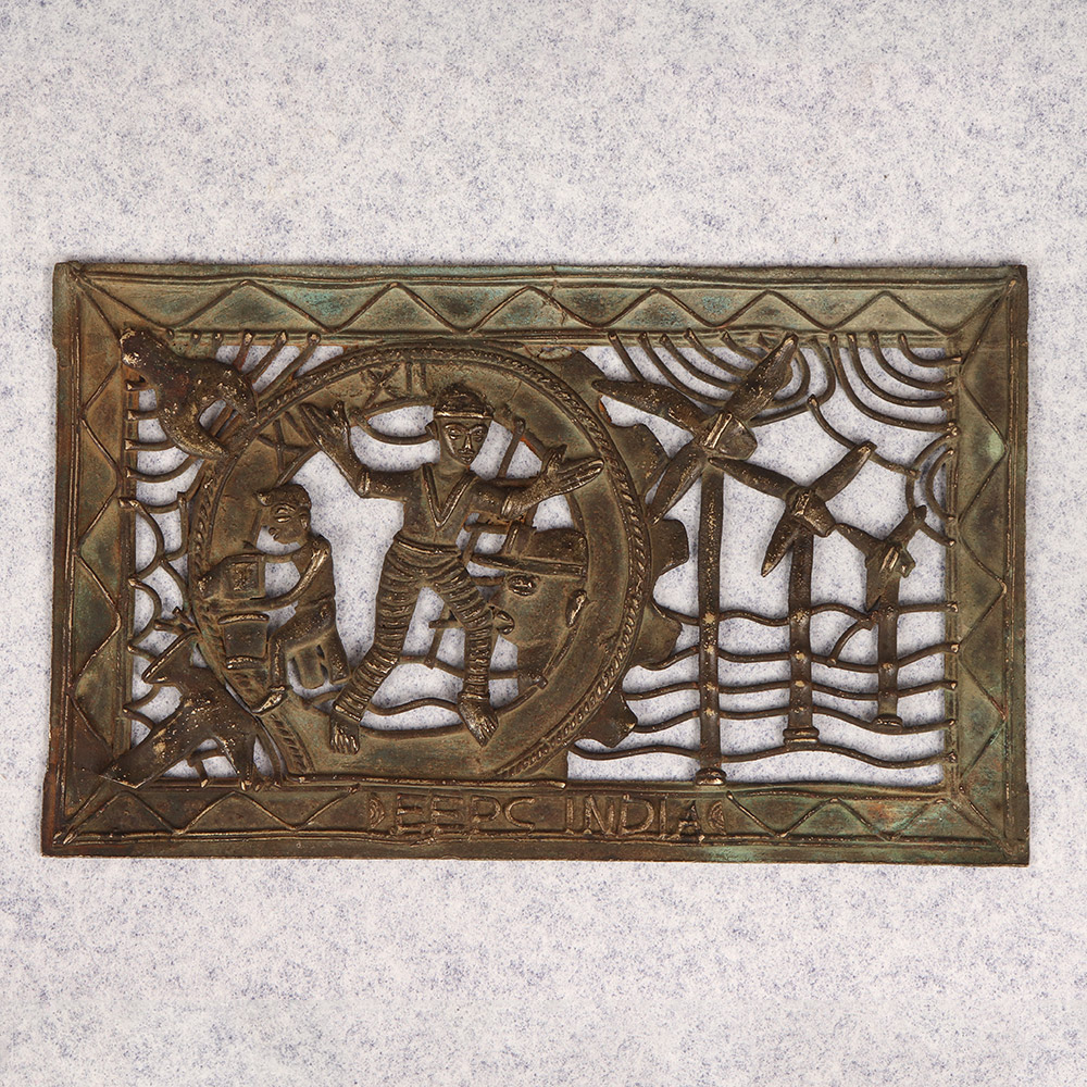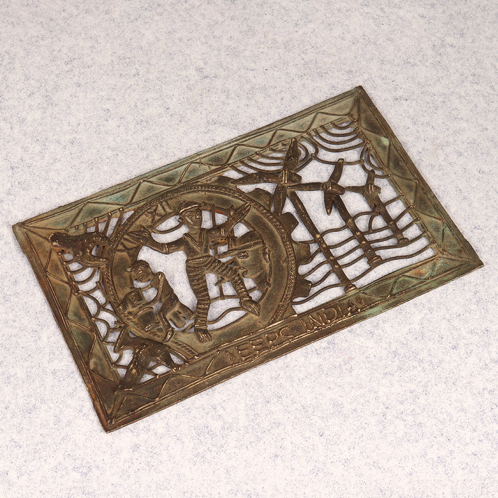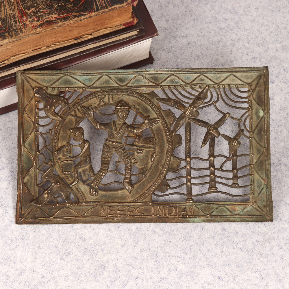 Discover the captivating allure of ancient tribal art with this exquisite vintage brass Jali. Meticulously crafted by skilled artisans, this intricate screen showcases the timeless elegance of South Asian design. This breathtaking Jali isn't just a piece of decor - it's a work of art that transports you to distant, enchanting lands. The delicate, interlocking patterns evoke the grand palaces and temples of India, India, and the Middle East, infusing your space with a sense of global wonder. Whether you're drawn to eclectic global design or simply appreciate timeless craftsmanship, this Jali is a must-have addition to your home. Use it to add a touch of exotic elegance to your living room, bedroom, or office. Or let it take center stage as a stunning focal point that commands attention and sparks conversation. Elevate your space and ignite your imagination with the captivating beauty of this vintage brass tribal art Jali. Bring home this stunning piece and let its intricate, mesmerizing patterns transport you to a world of ancient splendor.