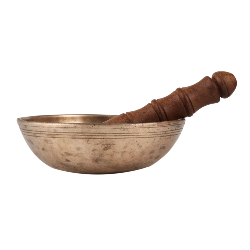 This exquisite singing bowl from a Tibetan monastery is a true gem for any vintage collection. Made of authentic bell metal and accompanied by a wooden mallet, it emanates a rich and resonant sound that transports you to the serene realms of the Himalayas. The craftsmanship is awe-inspiring, with intricate etchings on the surface adding to its aesthetic appeal. Whether used for meditation, sound therapy, or simply as a decorative piece, this singing bowl is a treasure that reflects the ancient art and culture of Tibet. It is an incredible gift for special, festive and auspicious occasions for your family, friends and relatives.