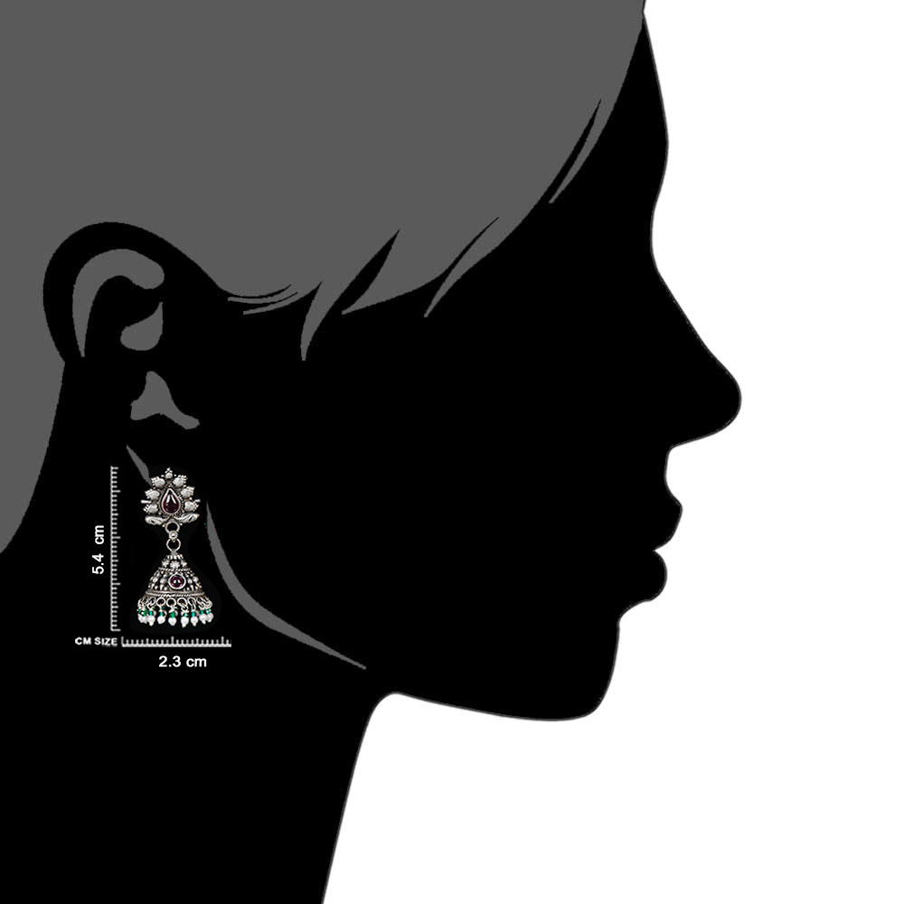 Indian 92.5 Sterling silver Earrings with leaves bird and amethyst stone stud decorated with green peridot pearl bead tassels. Match it with a sari , faded jeans, cotton kurtis , lehengas and punjabi suits.Gift it to your friends ,sisters and near and dear ones.