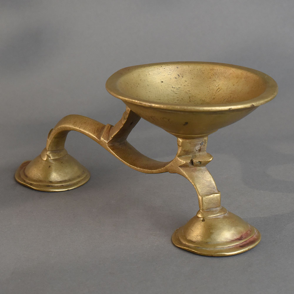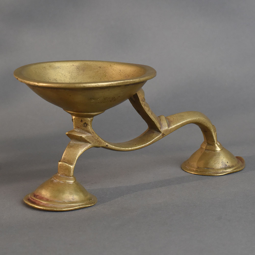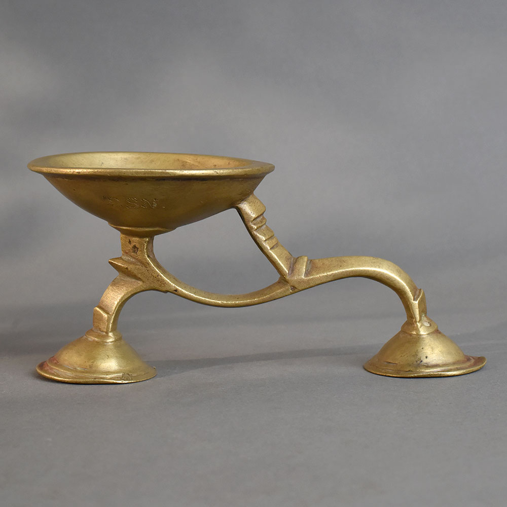 - Antique brass aarti oil lamp with wide deep bowl
