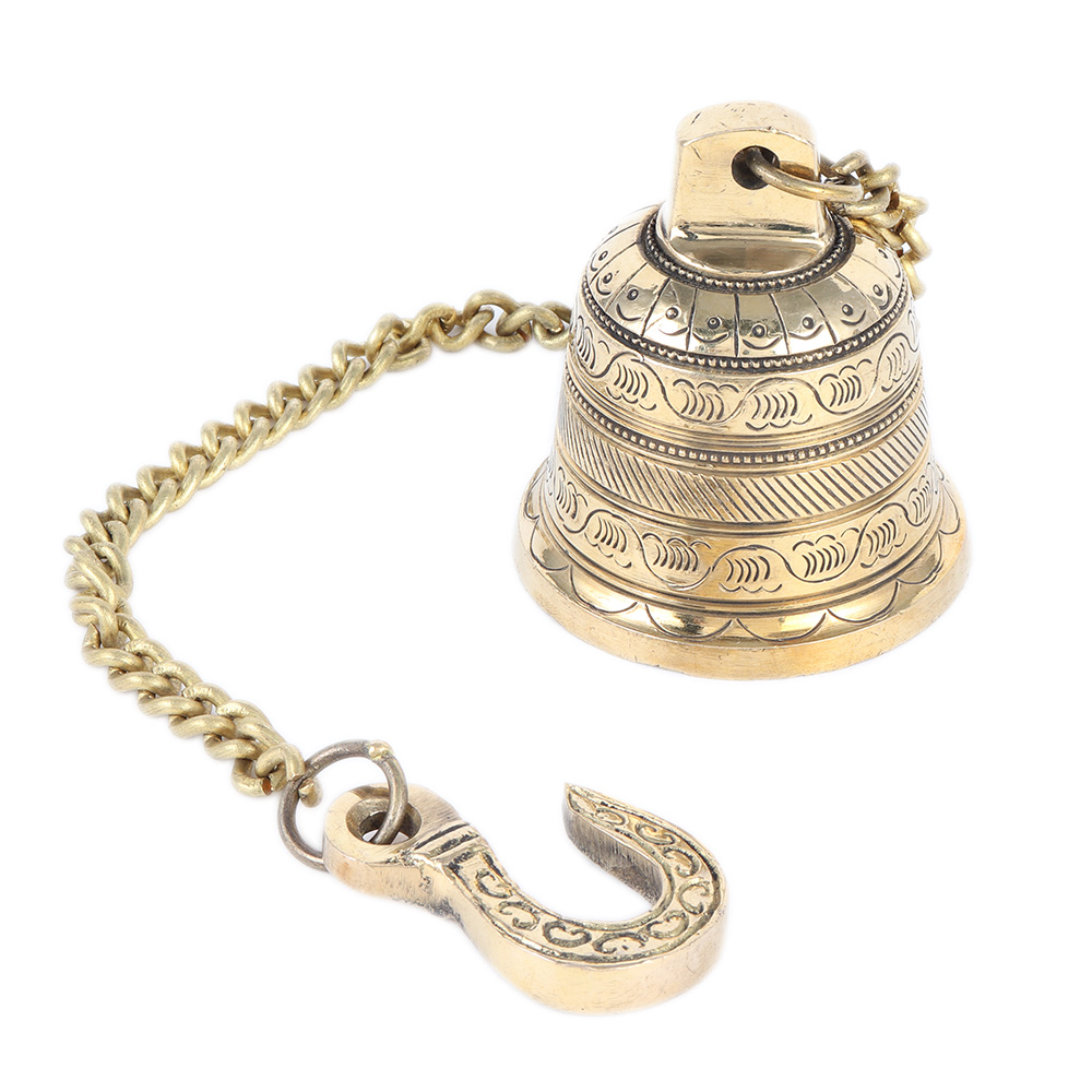 The hanging bell is made entirely of brass, and the lamp's finishing is entirely hand carved. This bell is designed for wall mounting and will complement the aesthetic and feel of your home.
