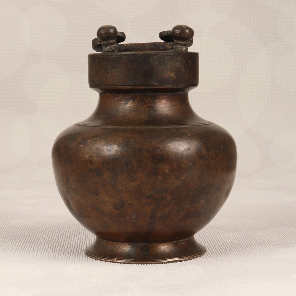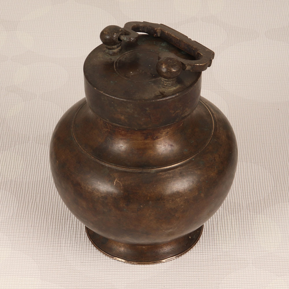 Immerse your space in timeless elegance with our Vintage Brass Holy Water Pot which is a testament to the craftsmanship of talented Indian artisans. Meticulously handcrafted from high-quality brass, this piece embodies a rich cultural heritage. Its dark brown finish adds a touch of sophistication, enhancing its vintage charm. Designed with intricate details, the pot features a lid adorned with a convenient handle, ensuring easy use. Versatile in its functionality, this artefact seamlessly transitions from a holy water container to a unique indoor flower pot, bringing a sense of sacred beauty to your home, office, restaurant, hotel, or cafe. The Vintage Brass Holy Water Pot is more than just a decorative item; it is a statement of tradition and artistry. Placed in any setting, it becomes a focal point, adding a touch of antiquity to your surroundings. As a thoughtful gift, it carries the warmth of tradition and spirituality, making it a perfect choice for special, festive, or auspicious occasions. Elevate your space with this distinctive piece and let its timeless allure captivate both hearts and eyes.
