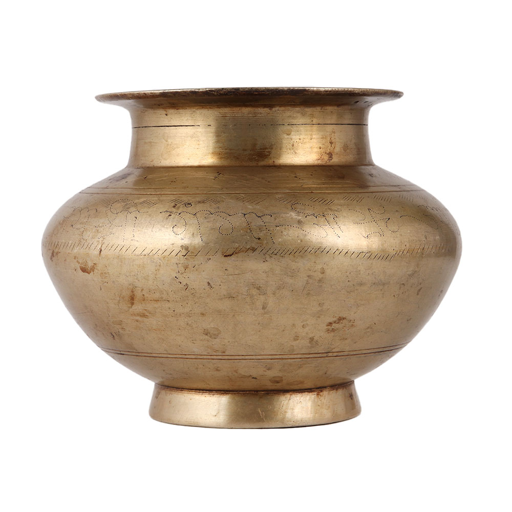 Buy a Brass Water Pot, also known as Lota, boasting a stunning antique brown finish. Meticulously crafted by highly skilled Indian artisans with their hands, this masterpiece is created using traditional methods passed down through generations. Constructed from high-quality brass, it not only showcases exceptional craftsmanship but also serves as a captivating decorative item. This Brass Water Pot holds great significance beyond its aesthetic appeal. When placed in the north or east direction of a house, it is believed to radiate positive energy, fostering a harmonious environment. In temples, it is often used to offer water to the sacred Shivling, acting as a conduit to absorb negativity from the surroundings and disseminate positive vibrations. Additionally, this elegant pot can be utilized to present water offerings to the Sun God, aiding in the maintenance of a balanced spirit and mind. With its versatile nature, the Brass Water Pot can also be employed as an indoor flower pot, adding a touch of elegance to any home or office space. Perfect for special occasions, festivals, or auspicious events, it makes an ideal gift for your beloved family, friends, or relatives.