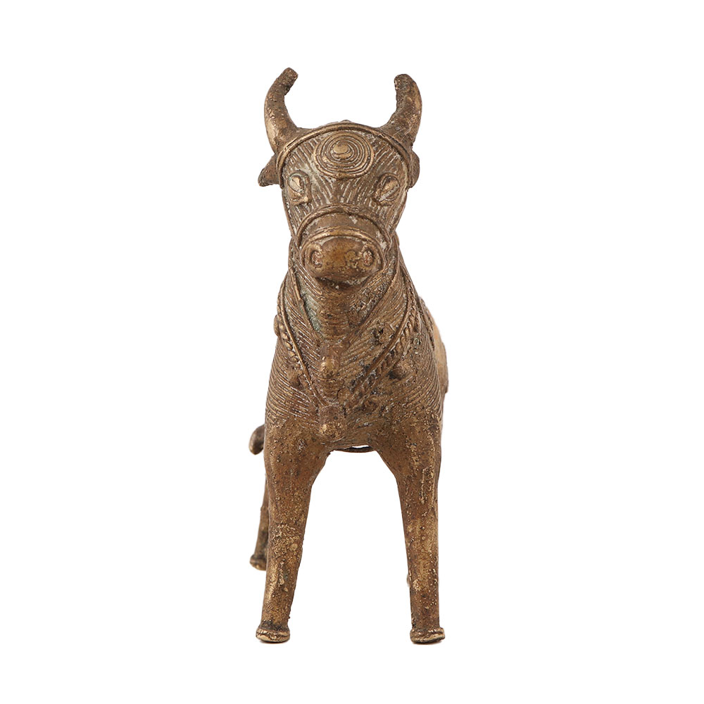 This exquisite brass statue depicts Lord Nandi, the divine vahan and devotee of Lord Shiva, in a tribal art style. Handmade by skilled artisans, the statue features intricate detailing and craftsmanship that adds to its unique charm. Perfect for worship and decoration in homes, temples, or sacred spaces, this brass statue exudes a sense of devotion and spirituality. With its radiant brass finish and intricate design, it can also serve as a thoughtful gift for loved ones, conveying blessings of strength, endurance, and auspiciousness. This stunning brass statue of Lord Nandi is a testament to the rich cultural heritage and reverence for Hindu mythology, making it a cherished addition to any collection or sacred space.