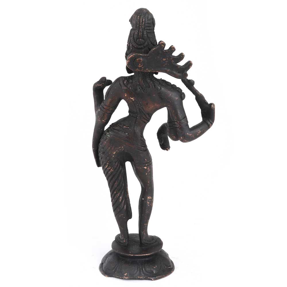 Indian Bass Statue Of A Lady Dancer is adorned with jewelery and beautiful clothes she stands with the on a raised platform Place it on the display or used as a gift for friends and relatives .