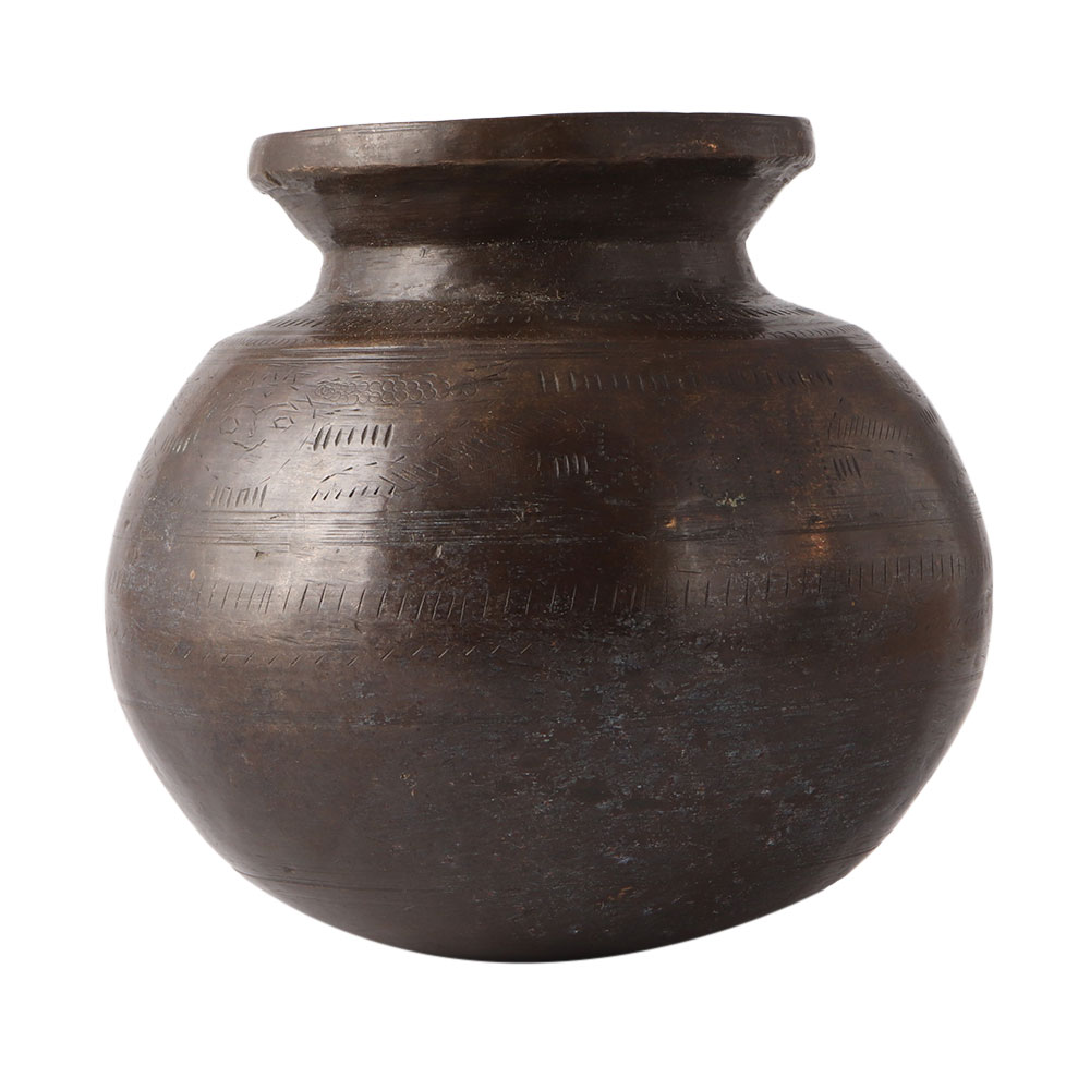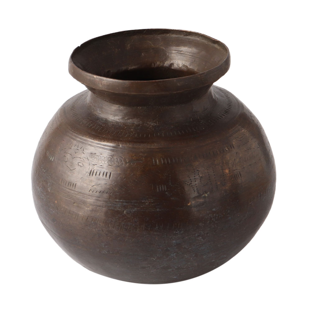 This gorgeous Hindu ancient brass pot is the perfect decorative material for a bohemian-inspired home. This  Indian pot would bring exquisite appeal to your living room, dining area, or kitchen. It is frequently used in home temples or hindu temples. These things would be beneficial additions to your choice. a 19th-century Indian antique brass water jug with calligraphy. This brass water jug was made in India in the 19th century and has a spacious, tapering belly with etched calligraphy at the neck's base. This Indian brass jug from the 19th century will look lovely in any room.