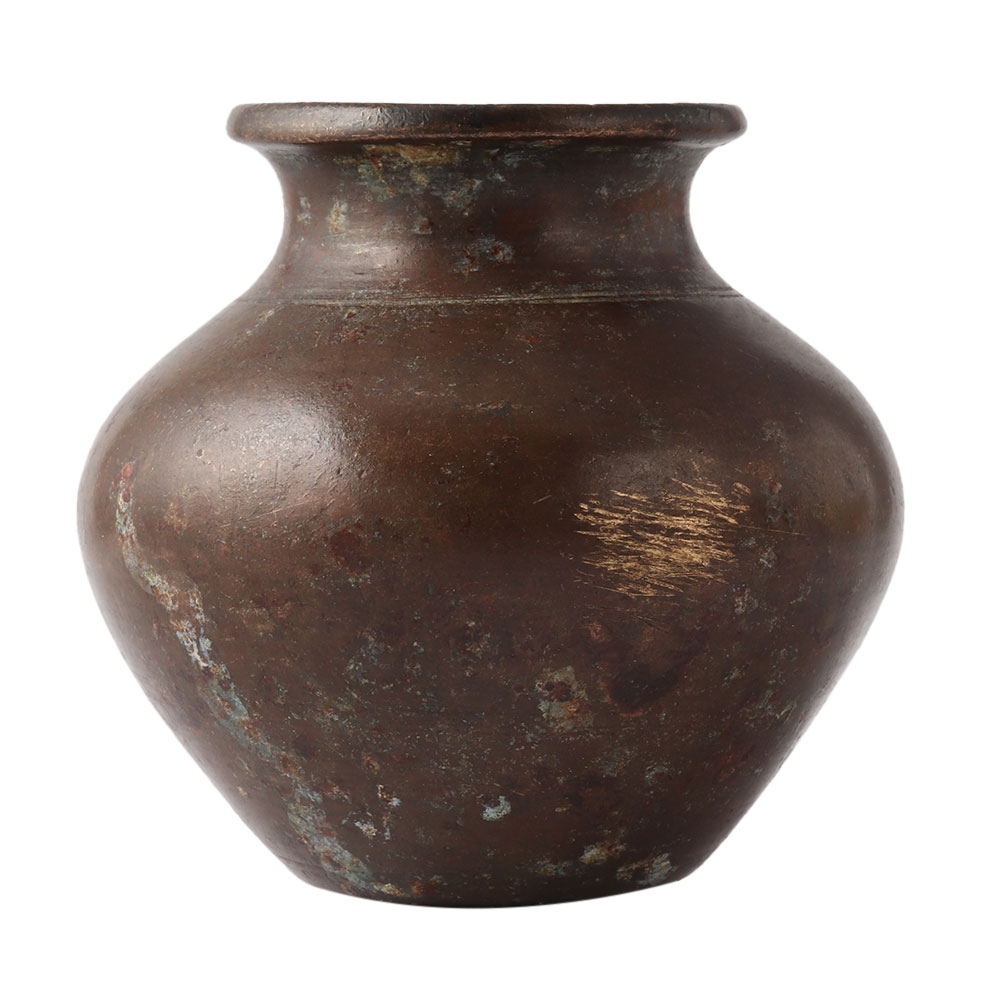 A truly gorgeous and distinctive metal water container that has leaves and birds etched all over it. Additionally, it has numerous designer details engraved on it, including a circle and a diamond. Additional circular borders with a variety of patterns are used to finish the motif. In temples and other places of worship, it is employed to store sacred water. The weight is considerable. It also functions as a vase. It is also effective as a decoration.