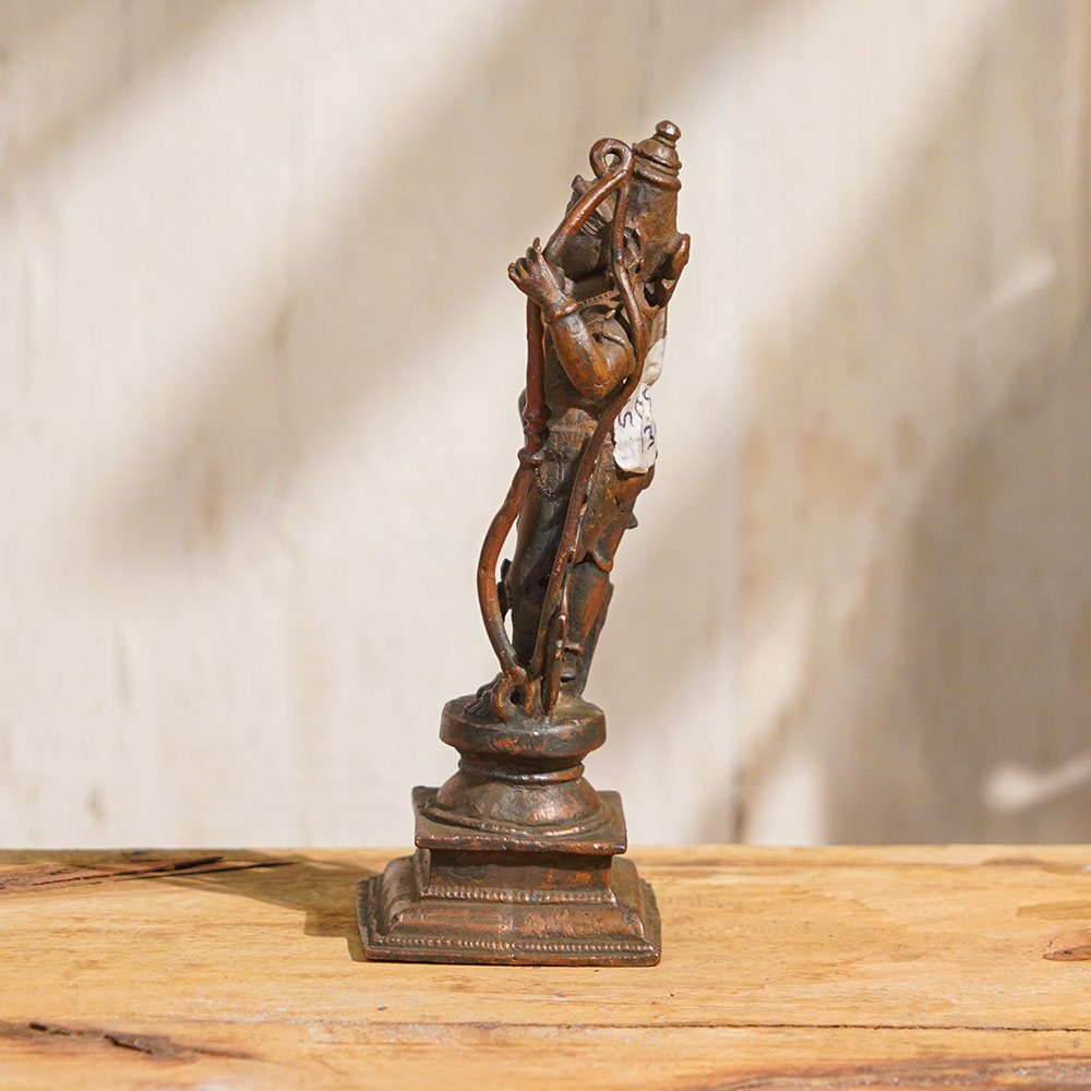 Buy this Copper Lord Ram Murti online and embrace the divine presence of Lord Ram in your life. This stunning statue of Lord Ram, meticulously handcrafted by skilled Indian artisans, is a testament to the divine grace and beauty of the revered Hindu god. Made of high-quality copper, this Lord Ram Murti is not only sturdy and durable, but also adorned with intricate details that capture the essence of Lord Ram's divine attributes. Lord Ram, the seventh incarnation of Lord Vishnu, is worshipped in most of the Indian temples as a symbol of righteousness, courage, and devotion. This exquisite copper idol of Lord Ram is a perfect addition to your home or temple, adding a touch of spirituality and reverence to your space. This Lord Ram statue is not only a sacred symbol for worship, but also an auspicious gift for your near and dear ones on special occasions. Its exquisite craftsmanship and spiritual significance make it a cherished and meaningful gift that can bring blessings of prosperity, happiness, and protection.