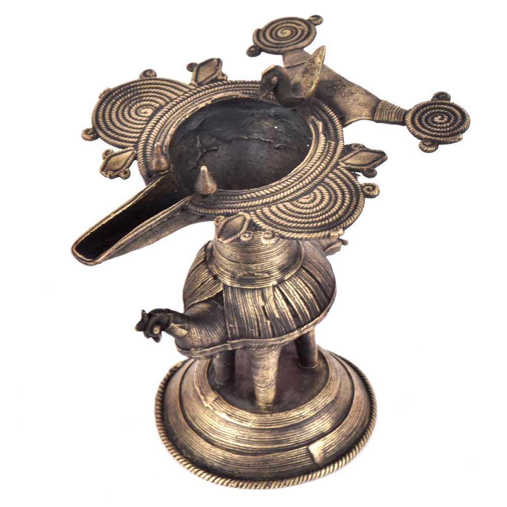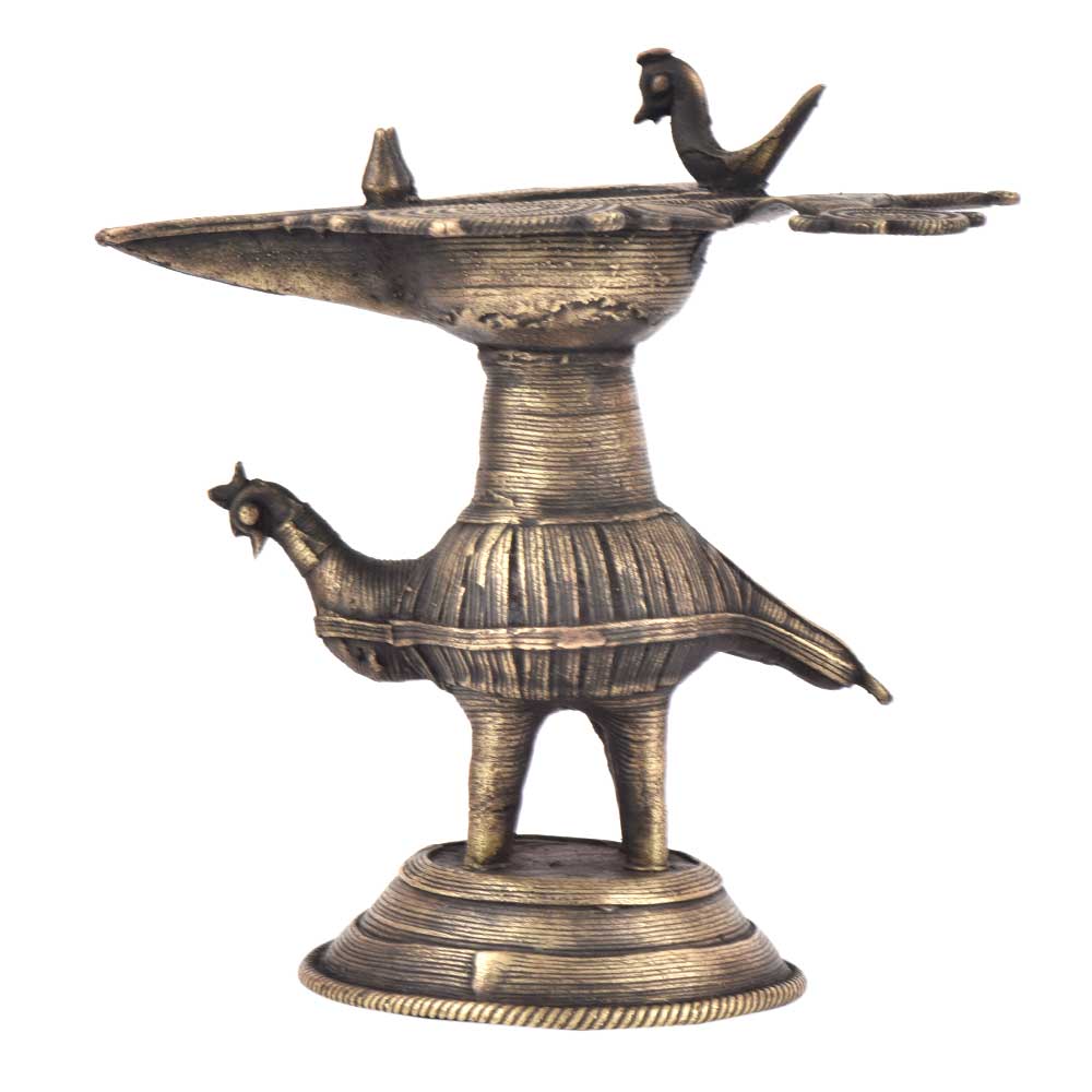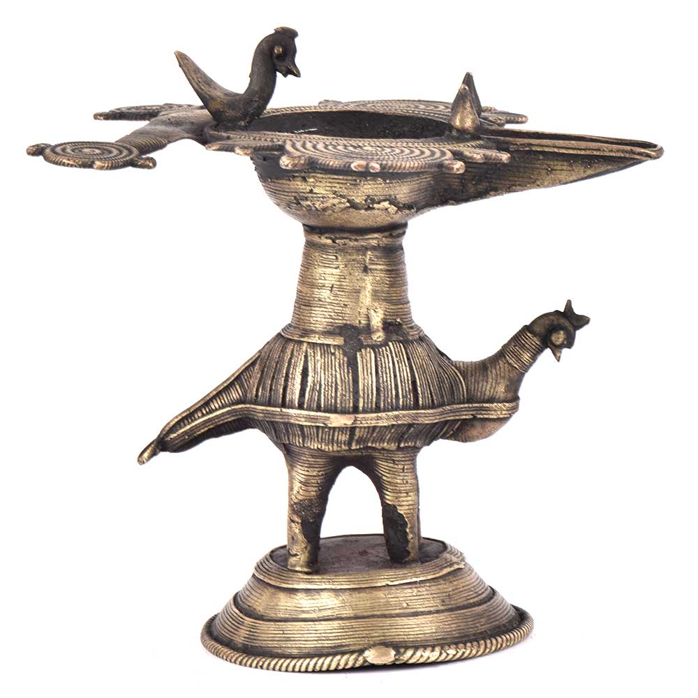 Indian Dokra Brass Oil Lamp Hand Crafted Peacock Oil Lamp