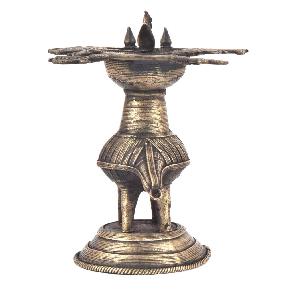 Handcrafted using old lost wax technique primarily practiced in Orrisa and West Bengals by the local or tribal artisans. In this technique the molten wax is poured into desired clay mould and when the wax melts the clay is broken and we get the desired metal object which is further polished to perfection. The Deep Cup Can Be Filled with Oil and Light a Cotton Wick. Diyas/ Oil Lamps are Considered Auspicious as in Hindu Religion. It is detailed with Elephant and Peacock Animals with Beautiful Details.