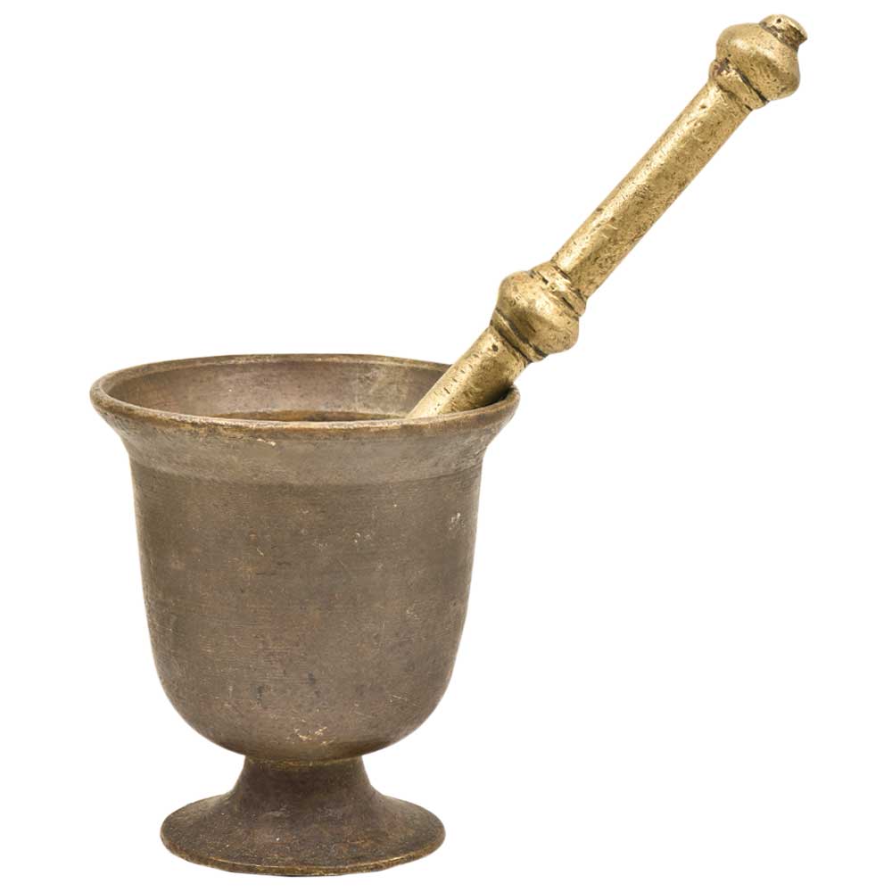 A Heavy Cast Brass Mortar and Pestle Urn shape and Very Nice Old Wear, Especially on the Pestle Used for Grinding Indian Spices That Add Flavor and Aroma to Curries and Other Traditional Dishes. It is Also Used for Medicinal Use Where Herbs are Grinded to Prepare Ayurvedic Medicines.