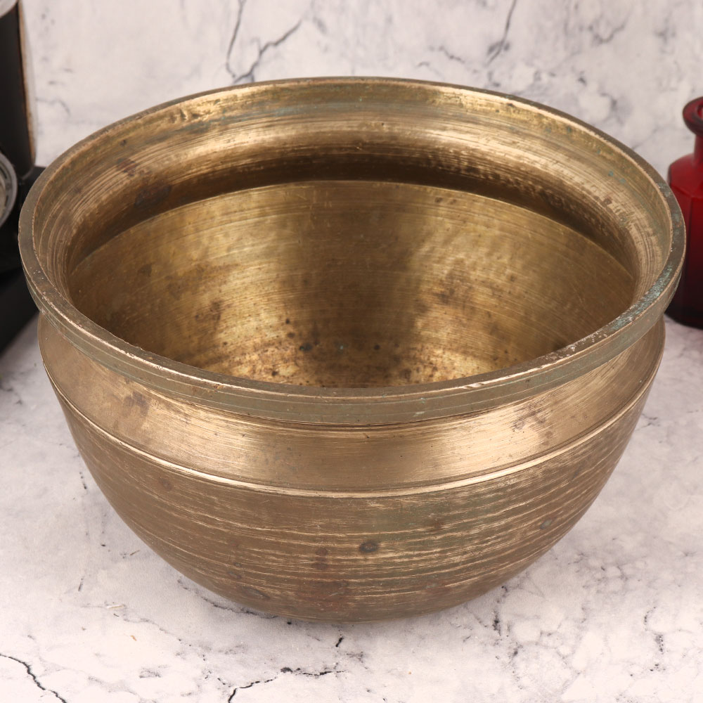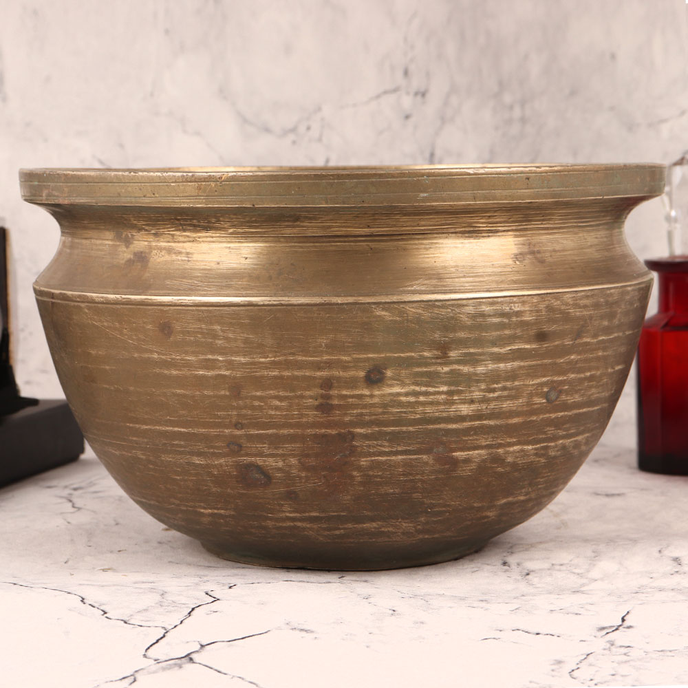 Adorn your interior with the timeless elegance of our Vintage Brass Flower Pot. Crafted with meticulous attention to detail by highly skilled Indian artisans, this exquisite piece showcases the rich heritage of South Indian artistry. Made from high-quality brass, it boasts a lustrous antique brown finish that exudes an air of sophistication. This versatile flower pot is the perfect addition to any space – whether it's your home, office, restaurant, hotel, cafe, or shop. Its stunning design makes it a captivating decorative piece that effortlessly complements a wide range of interior styles. Use it as a flower pot to bring a touch of nature indoors, or display it as an artful centerpiece. Collectors will appreciate its vintage charm, as it seamlessly blends with antique collections. The Vintage Brass Flower Pot also makes for a thoughtful and unique gift for your family, friends or relatives on special, festive, or auspicious occasions. It symbolizes not only beauty but also the enduring craftsmanship of Indian artisans, making it a cherished addition to any setting. Embrace the legacy of Indian artistry with this extraordinary piece.