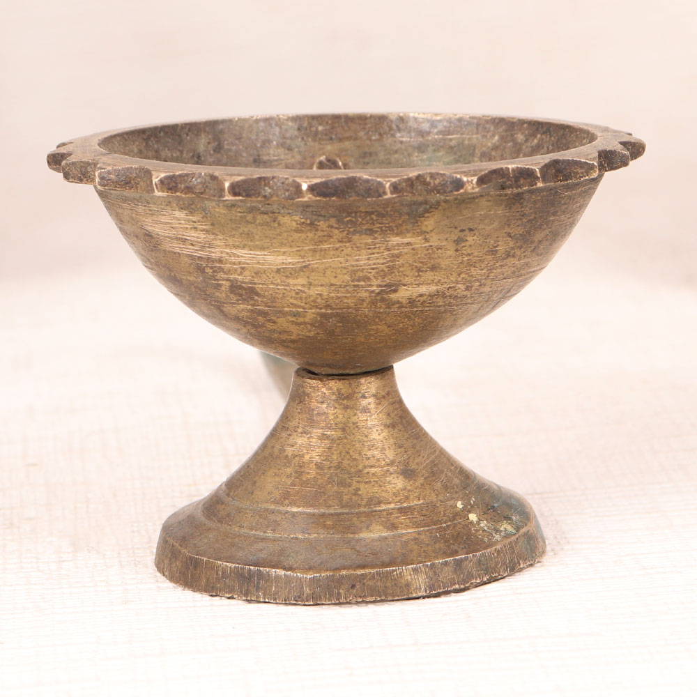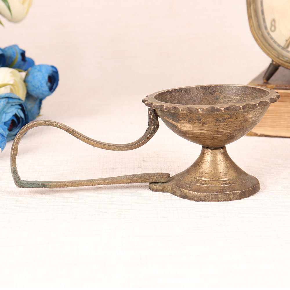 This Vintage Brass Aarti (Prayer) Lamp is a testament to the craftsmanship of highly skilled Indian artisans from Western India. Handcrafted with precision, this lamp boasts an antique brown finish that exudes timeless charm. Crafted from high-quality brass, it is not merely an object but a work of art that adds an aura of elegance to any setting. Whether it's your home, office, restaurant, hotel, shop, or cafe, this Aarti lamp serves a versatile purpose. Its primary function is to grace your prayer room, casting a warm, soothing light during morning and evening rituals. Additionally, it's a captivating decorative piece, appealing to vintage collectors and ideal for exhibition displays. To illuminate this masterpiece, simply fill it with mustard oil or ghee and use cotton wicks. This lamp offers a glimpse into India's rich cultural heritage and can be a cherished gift for your loved ones on special, festive, or auspicious occasions. Embrace tradition and beauty with our Vintage Brass Aarti Lamp, a symbol of Indian artistry and spirituality.