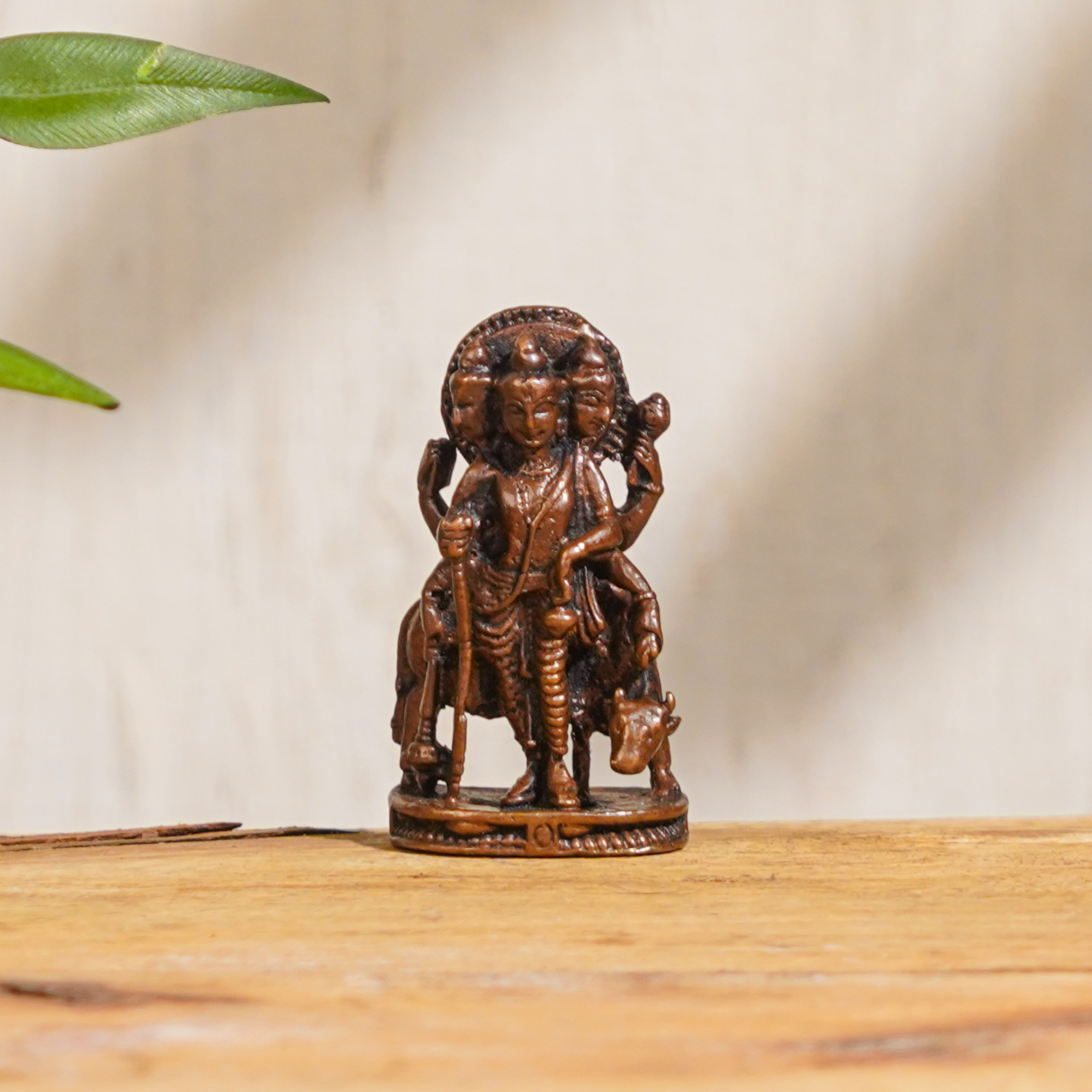 Buy Lord Dattatreya Murti for home temple and bring home the blessings of the divine trinity. The Lord Dattatreya copper statue is an exquisite work of art handcrafted by skilled Indian artisans using high-quality copper. The statue depicts Lord Dattatreya, the Hindu trinity of gods, standing with his vahana cow. The intricate details and flawless finish of the statue make it an excellent choice for anyone looking to add a touch of divinity to their home or office prayer room. Copper is considered an auspicious metal in Hinduism, making this statue not only a beautiful addition to your home but also an object of spiritual significance. You can buy Lord Dattatreya statue online and worship him at your home temple or at the temple to seek his blessings. You can also gift this statue to your family, friends, or relatives on special, festive or auspicious occasions. In conclusion, the Lord Dattatreya copper statue is a must-have for anyone looking to add a touch of divinity to their surroundings. Its intricate design and spiritual significance make it a truly unique and valuable addition to any collection.