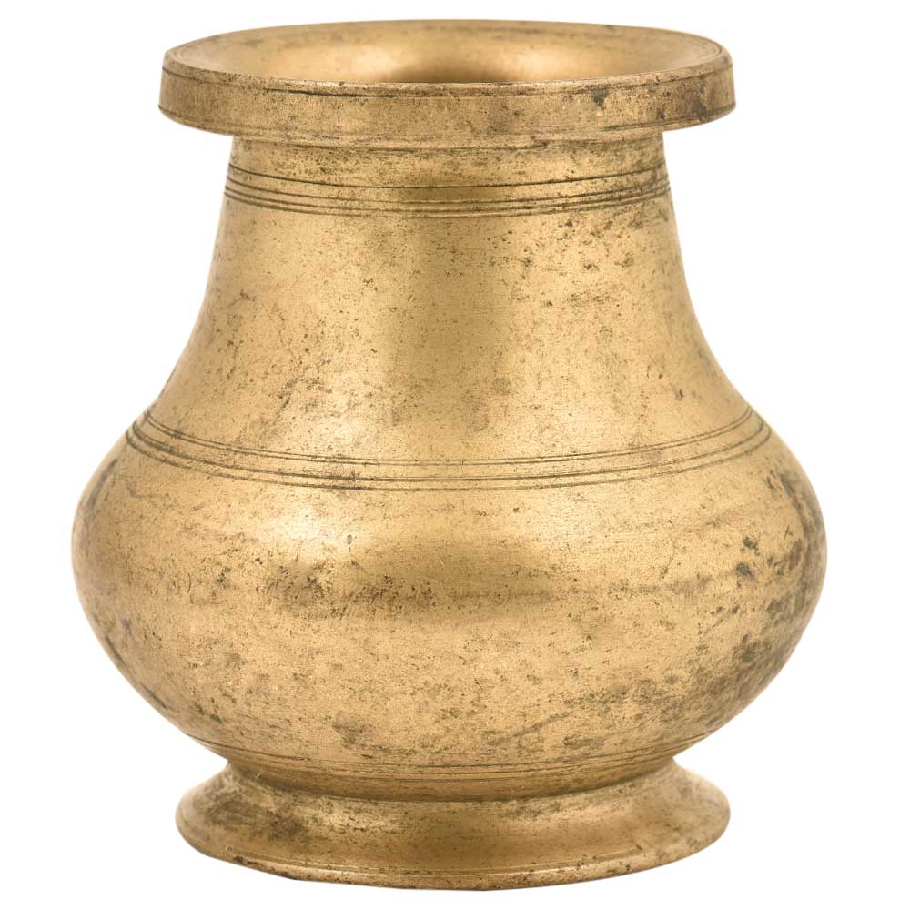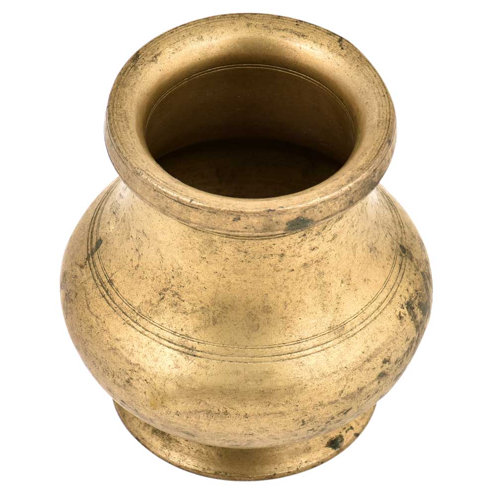 Hand made brass water pots has a plain curved neck and a wide mouth on the top of the neck with a large belly and bottom rim creates a lovely visual interest in your home decor.The pot has a rich patina made by the expert craftsmen is an attractive addition to your old, wooden dining table or as a showpiece on the corner shelf.
