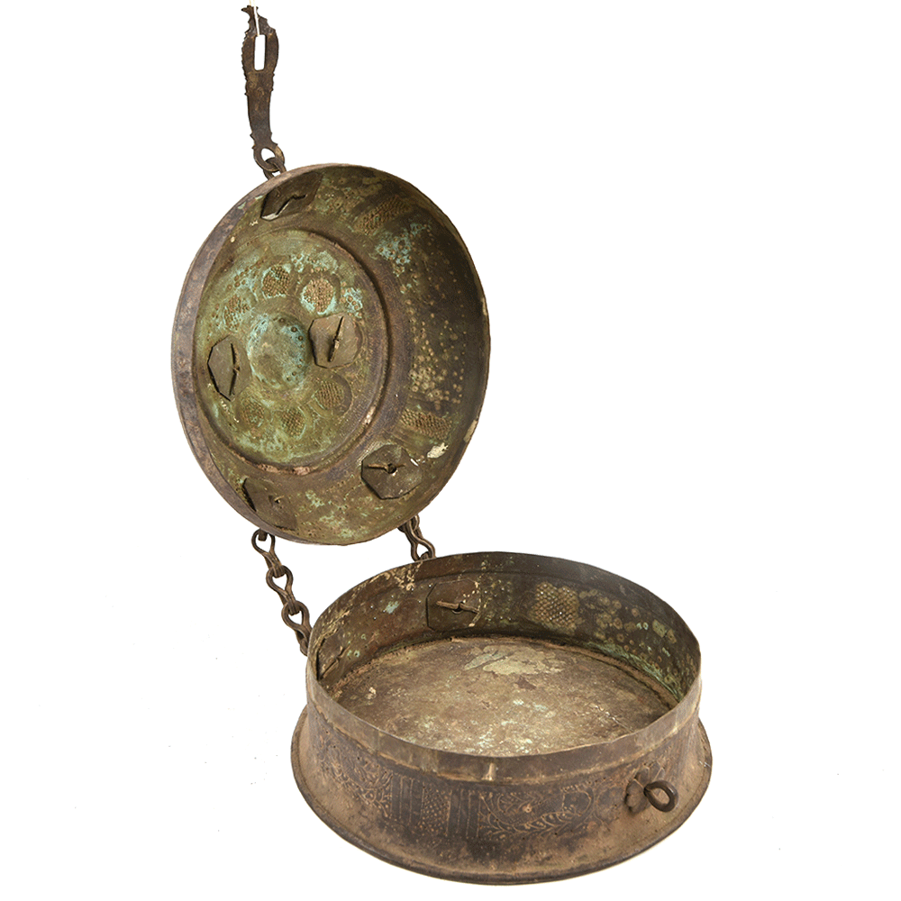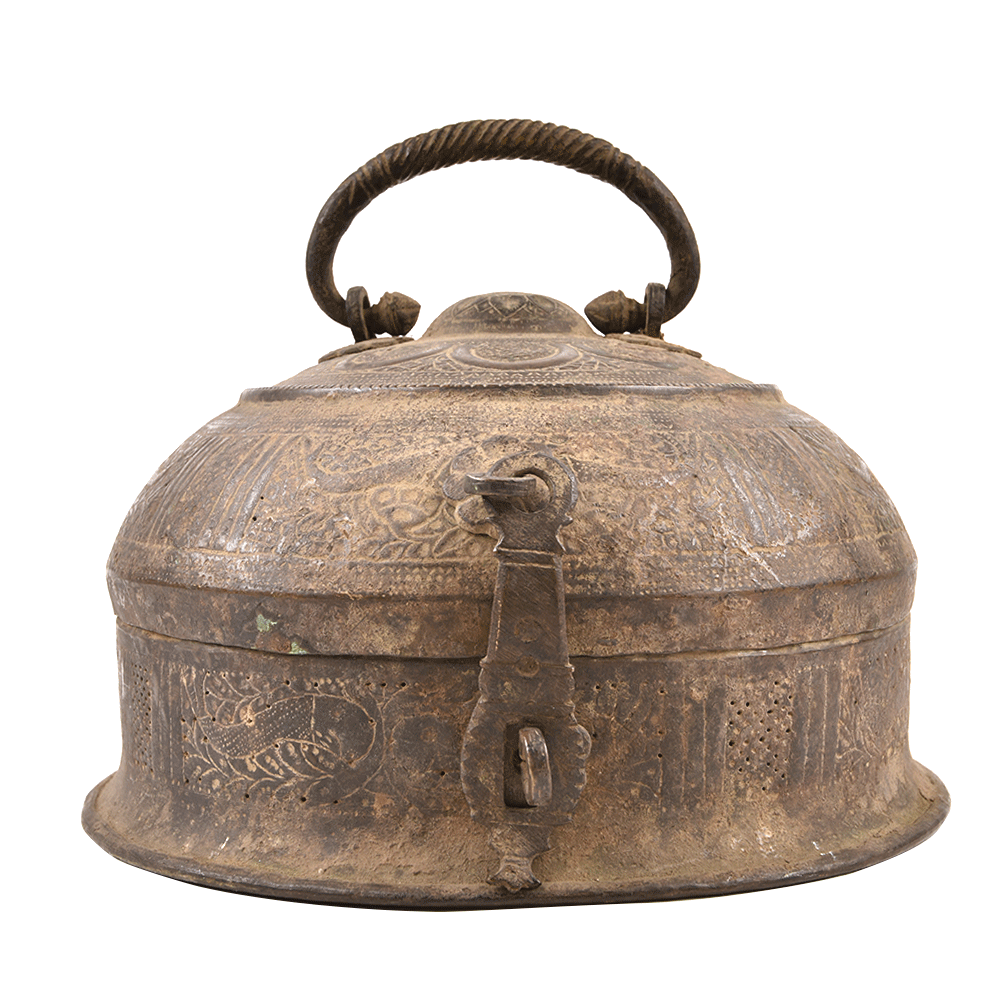 Indian Old Vintage Brass Hand Crafted Engraved Round Storage Box