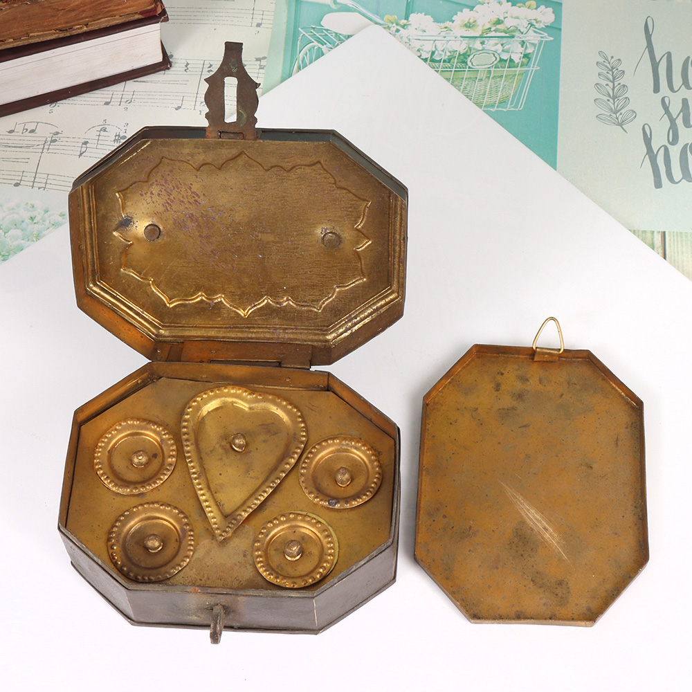 Elevate your paan experience with this stunning brass paan daan box. Crafted with exceptional attention to detail, this vintage-inspired container features five compartments, a secure latch, and a convenient handle - making it the ultimate accessory for your daily paan ritual. Indulge in the timeless tradition of paan with this beautifully designed paan daan. Its classic brass composition and thoughtful features transform a simple ritual into a luxurious experience. Whether keeping it on your coffee table or taking it on the go, this paan daan will infuse your daily routine with a touch of sophistication. Treat yourself or gift this paan daan to a loved one who appreciates the finer things in life. Its enduring appeal and practical design make it a cherished keepsake that will be enjoyed for years to come. Rediscover the joy of paan with this truly exceptional brass container.