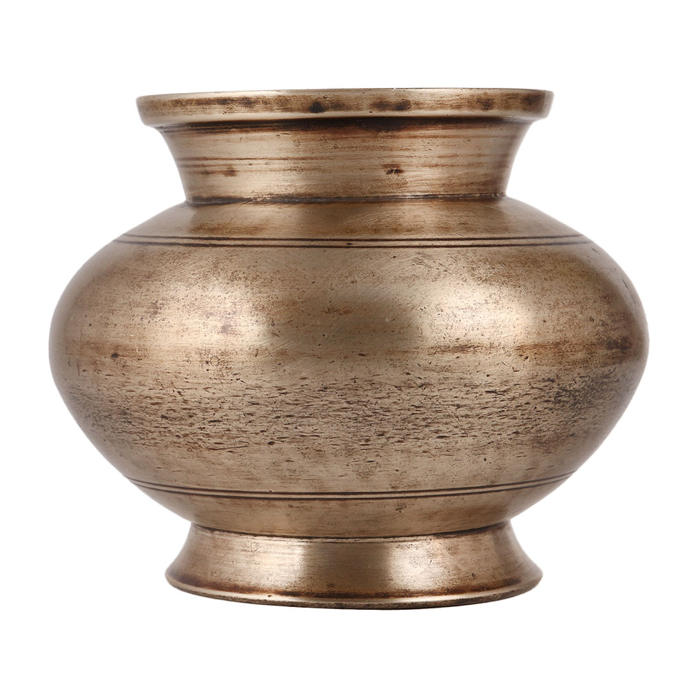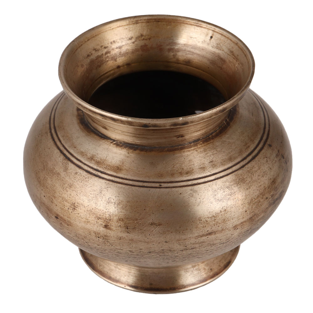 Buy an Indian Brass Water Pot or Lota, featuring a stunning antique brown finish. This magnificent piece is meticulously handcrafted by highly skilled Indian artisans using traditional techniques passed down through generations. Made from premium quality brass, this Lota exudes a timeless charm that captivates the eye and adds an elegant touch to any decor. Its intricate design and meticulous craftsmanship make it a true work of art. The Brass Water Pot holds a significant cultural and spiritual value. Placing it in the north or east direction of your home is believed to promote positive energy and create a harmonious environment. Tt can be utilized to offer water to the sun god, fostering a balance between spirit and mind. Beyond its spiritual significance, this versatile piece can also be used as an indoor flower pot, bringing a touch of nature into your home or office. It serves as an exquisite decorative item, enhancing the aesthetics of any space. With its rich heritage and symbolism, the Brass Water Pot makes a thoughtful gift for your loved ones on special, festive, or auspicious occasions. Its beauty, craftsmanship, and spiritual significance make it a truly cherished and meaningful present.