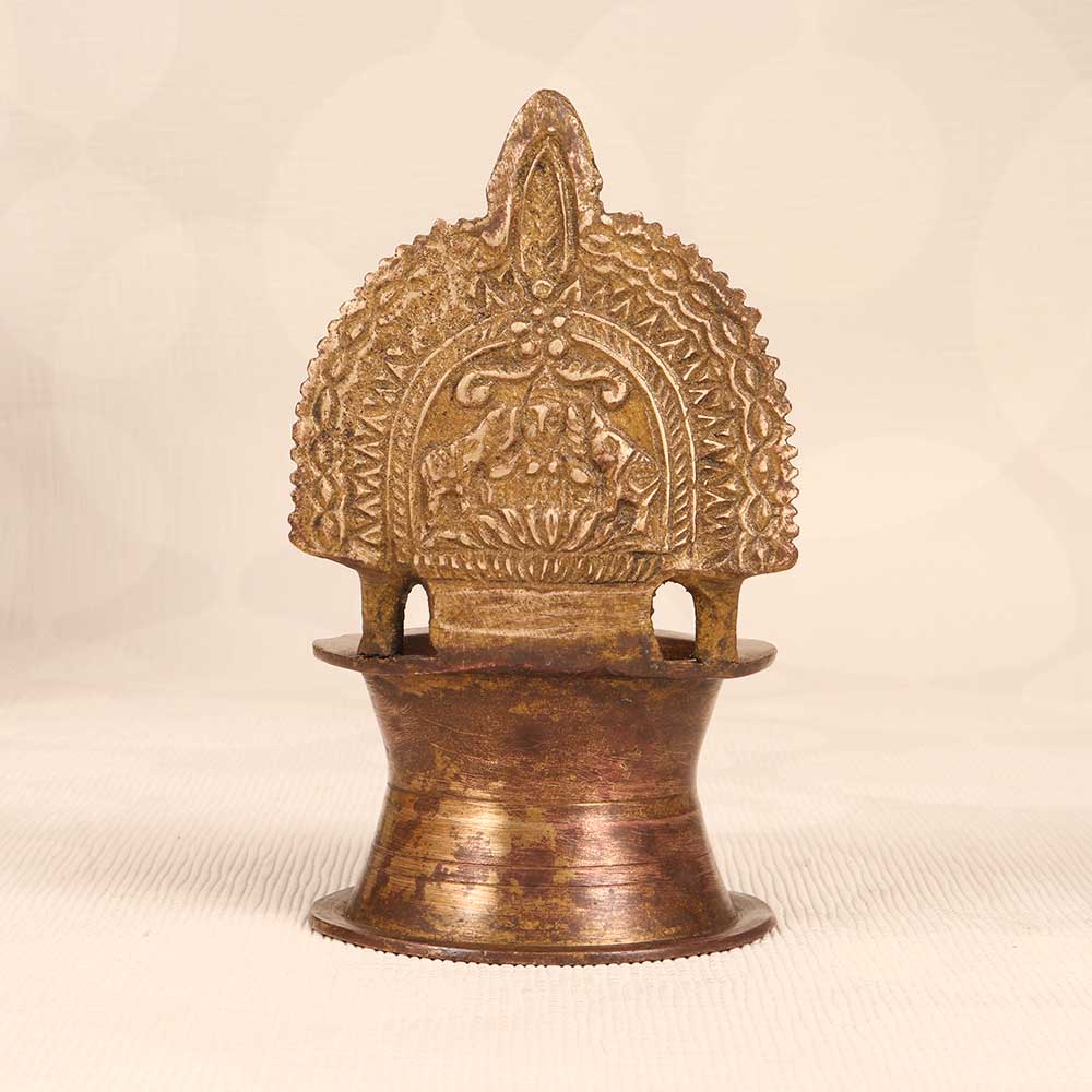 Experience the enchanting glow of an ancient light with the brass Gajlaxmi Oil Lamp. This handcrafted lamp brings the heritage of South Indian artistry into your home. Watch the hypnotic flicker of the oil lamp flame create a peaceful setting for quiet contemplation. The rich symbolism of the detailed brasswork connects you to time-honored spiritual traditions. Use this lamp to set intention before meditation, for evening prayers, or as part of your daily wellness ritual. Those wanting to infuse their home with heritage and meaning will find this lamp transports them. This vintage-style brass lamp passed down through generations bridges the ancient and modern. Bring its magical glow into your home.