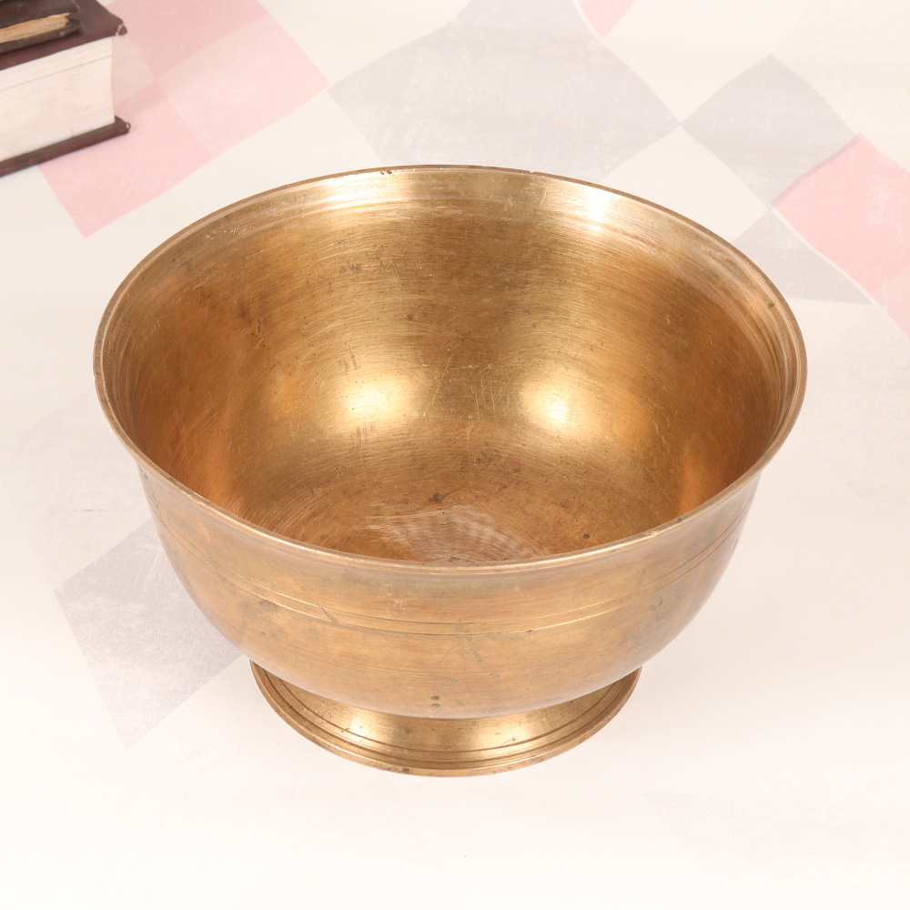 Infuse your living space with the allure of ancient elegance. This vintage brass holy bowl is a striking piece that bridges the gap between the sacred and the everyday, elevating your home with a sense of reverence and wonder. Crafted from solid brass, this holy bowl boasts unparalleled durability and a one-of-a-kind patina that only grows more beautiful with age. Its dual-purpose design allows you to use it as a planter for lush greenery or as a vessel for your ritual practice, making it a versatile addition to any space. Whether you choose to display it in your living room, on your altar, or in your entryway, this substantial holy bowl commands attention with its striking good looks and timeless appeal. Fill it with your favorite plants, light some incense, or use it to house your most cherished ritual items - this piece adapts seamlessly to your lifestyle and spiritual needs. Embrace the ancient elegance of this vintage brass holy bowl and let it infuse your home with a sense of wonder and reverence.