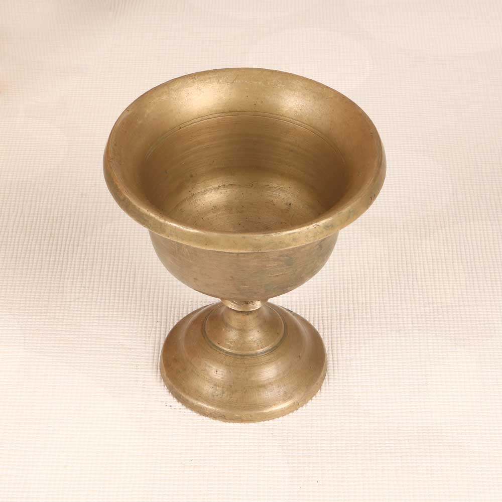 Add a touch of devotion and elegance to your daily prayers with this antique brass holy kumkum cup. Lovingly handcrafted from solid brass, this cup features an ornate lotus flower design that symbolizes purity, beauty, and grace. Its delicately hammered finish gives it a vintage, timeworn quality, as if it has been passed down through generations of worship. When you press your finger to this cool, smooth brass, gathering crimson kumkum powder to mark your devotion, you honor the connection between past and present. Use this cup to add meaning and beauty to your quiet moments of prayer and meditation, inspired by the rituals of those who came before. Let it be a reminder that faith transcends time.