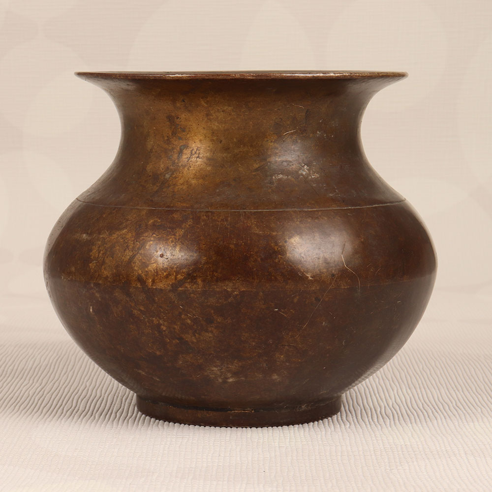 Buy a Vintage Brass Holy Water Pot online that is a testament to timeless craftsmanship and cultural elegance. Handmade by skilled Indian artisans with a legacy of artistry, this lota boasts a rich dark brown finish that adds a touch of antiquity to any space. Forged from high-quality brass, the pot serves a dual purpose, blending spirituality and aesthetics seamlessly. Traditionally designed for holy water, it doubles as a charming indoor flower pot, bringing an air of sophistication to your home, office, restaurant, hotel, or cafe. Its versatility transcends its spiritual origins, making it a distinctive piece for decoration. Perfect for those who appreciate the allure of vintage collections, this brass holy water pot is a captivating addition. The meticulous craftsmanship and authentic design make it a standout piece that tells a story of tradition and skill. Ideal for gifting, it becomes a meaningful present for your family, friends or relatives during special, festive, or auspicious occasions, imparting blessings and beauty in equal measure. Embrace the timeless charm and cultural heritage embodied in this vintage masterpiece.