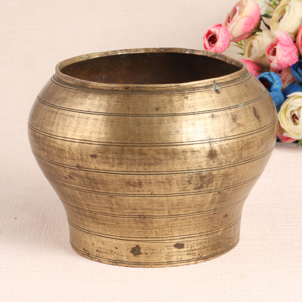 Looking for a unique and charming item to add to your collection? Look no further than this vintage pot. Its timeless design and elegant brown finish make it a standout piece for any space, and it can be used as a planter for indoor or outdoor plants. Use it to create a relaxing and peaceful atmosphere in your home or office. It spreads the positive energy in the environment when kept in the north or east direction of the house of office. Use it to plant holy tulsi at your home or office and worship it to keep yourself healthy. An auspicious gift for your loved ones on anniversary, birthday, wedding, housewarming, corporate party or festival.