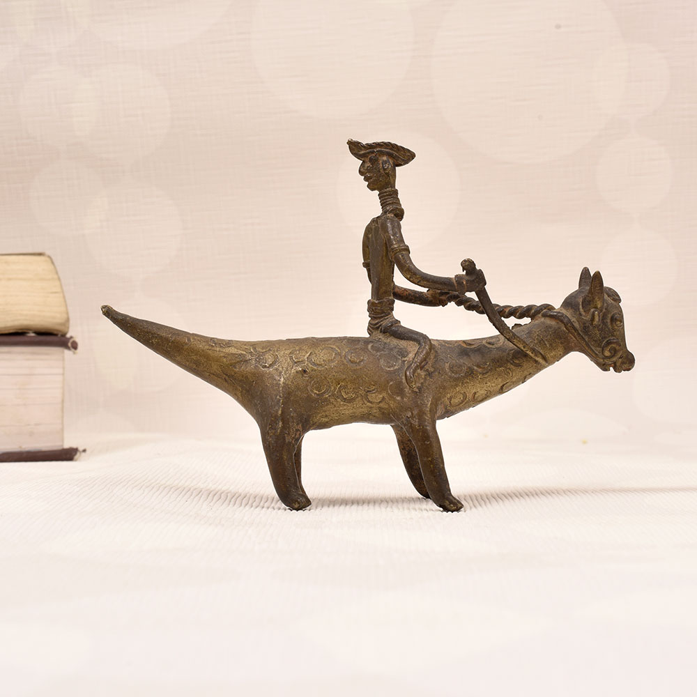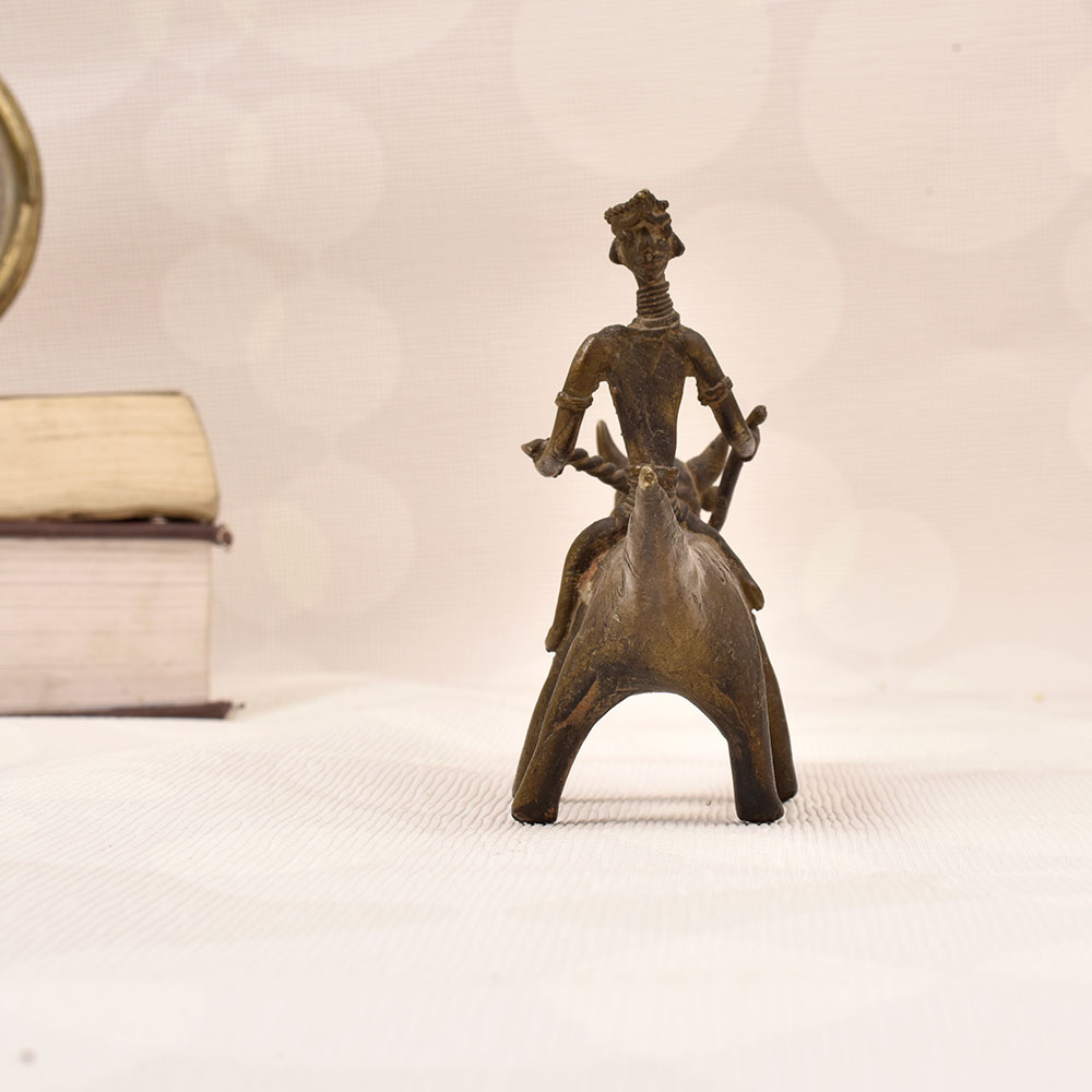 Gaze upon this stunning brass statue and be transported to a world of ancient wisdom and primal power. Crafted with meticulous detail, this piece depicts a magnificent animal with a noble rider upon its back, symbolizing the symbiotic bond between man and beast. This captivating brass statue is more than just a decorative piece - it's a testament to the enduring power of the natural world and the wisdom of ancient civilizations. Invite the spirit of the tribal lands into your home, and let this striking sculpture inspire you to reconnect with the primal forces that shape our world. Display it proudly, and let its timeless allure captivate all who behold it.