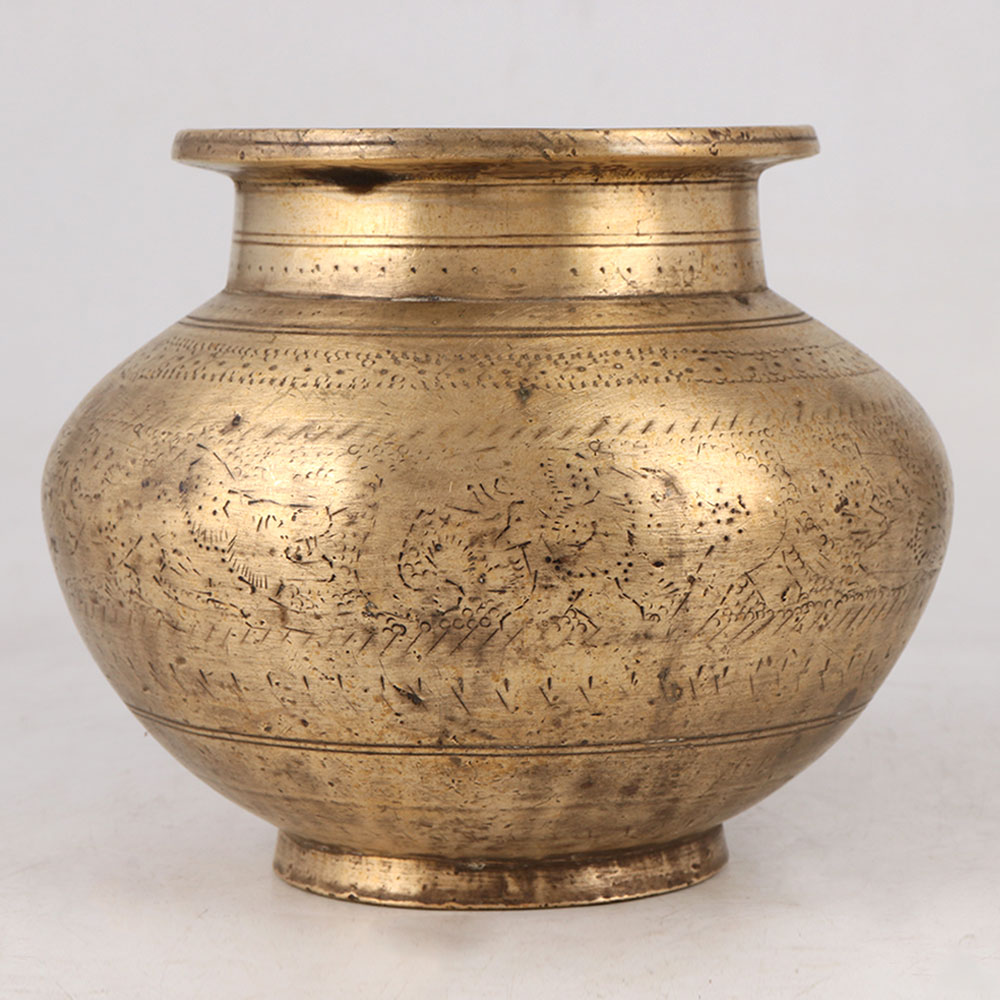 Buy a Brass Holy Water Pot online that is an enchanting piece of craftsmanship that seamlessly blends tradition, artistry, and spirituality. This artefact boasts a beautiful antique brown finish, adorned with intricate engravings meticulously created by professional Indian artisans. Crafted from high-quality brass, this holy water pot finds its purpose in temples, where it is revered for its role in offering water to deities like Lord Shiva and the Sun God. It holds a special place in rituals and havans, where it becomes the vessel for sacred water, symbolizing purity and divinity. Believed to radiate positive energy, this holy water pot is often placed in the north or east direction of homes, gracing the surroundings with its auspicious presence. Filled with water, it becomes a source of serenity and blessings, bringing peace and harmony to any household. This enchanting pot holds profound significance in Indian culture, making it a cherished addition to one's collection of religious artefacts. Alternatively, it doubles as a striking flower pot, infusing any space with a touch of timeless elegance. Perfect for commemorating special occasions or festive celebrations, this Brass Holy Water Pot makes for an exceptional and thoughtful gift, expressing love, respect, and devotion to your loved ones. Embrace the spiritual essence and artistic splendour of India with this treasured keepsake.
