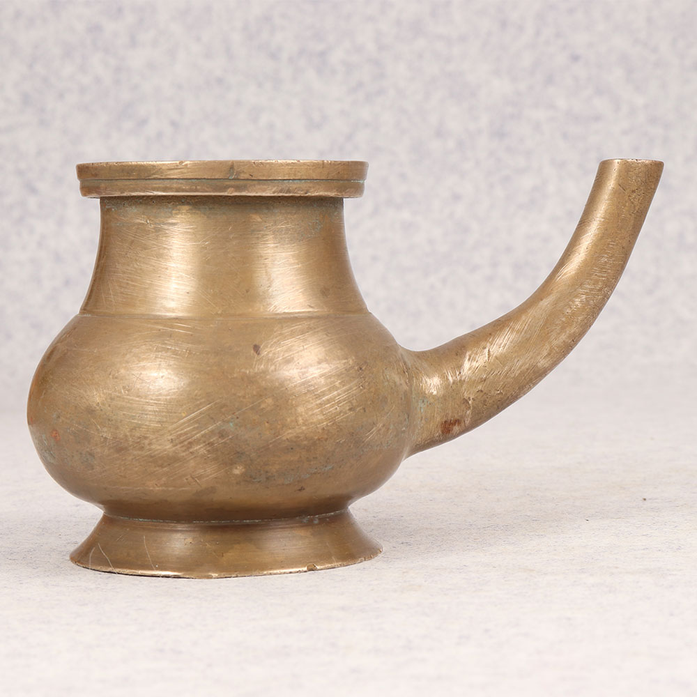 Enhance your spiritual space with the timeless elegance of the Vintage Brass Sagar Water Pot. Handcrafted by highly talented Indian artisans from premium brass, this exquisite piece is a symbol of tradition and craftsmanship. Its antique brown finish adds a touch of authenticity, reminiscent of bygone eras, making it a perfect complement for ritual and prayer at temples. The Sagar Water Pot features a spout for graceful pouring during sacred ceremonies, enhancing the ritualistic experience. Beyond the temple, it seamlessly integrates into various settings, including homes, offices, restaurants, hotels, and cafes. Its versatility allows it to serve as a focal point in prayer rooms or as a decorative piece, enriching any space with its cultural charm. This unique artefact is not only a functional item but also a cherished addition to vintage collections. Its handmade nature ensures each piece is a testament to the artisan's skill and dedication. Share the joy of spirituality and culture by gifting this Vintage Brass Sagar Water Pot to your family, friends or relatives on special, festive, or auspicious occasions. Embrace the beauty of tradition and craftsmanship with this exquisite piece that transcends time and resonates with the spirit of India's rich heritage.