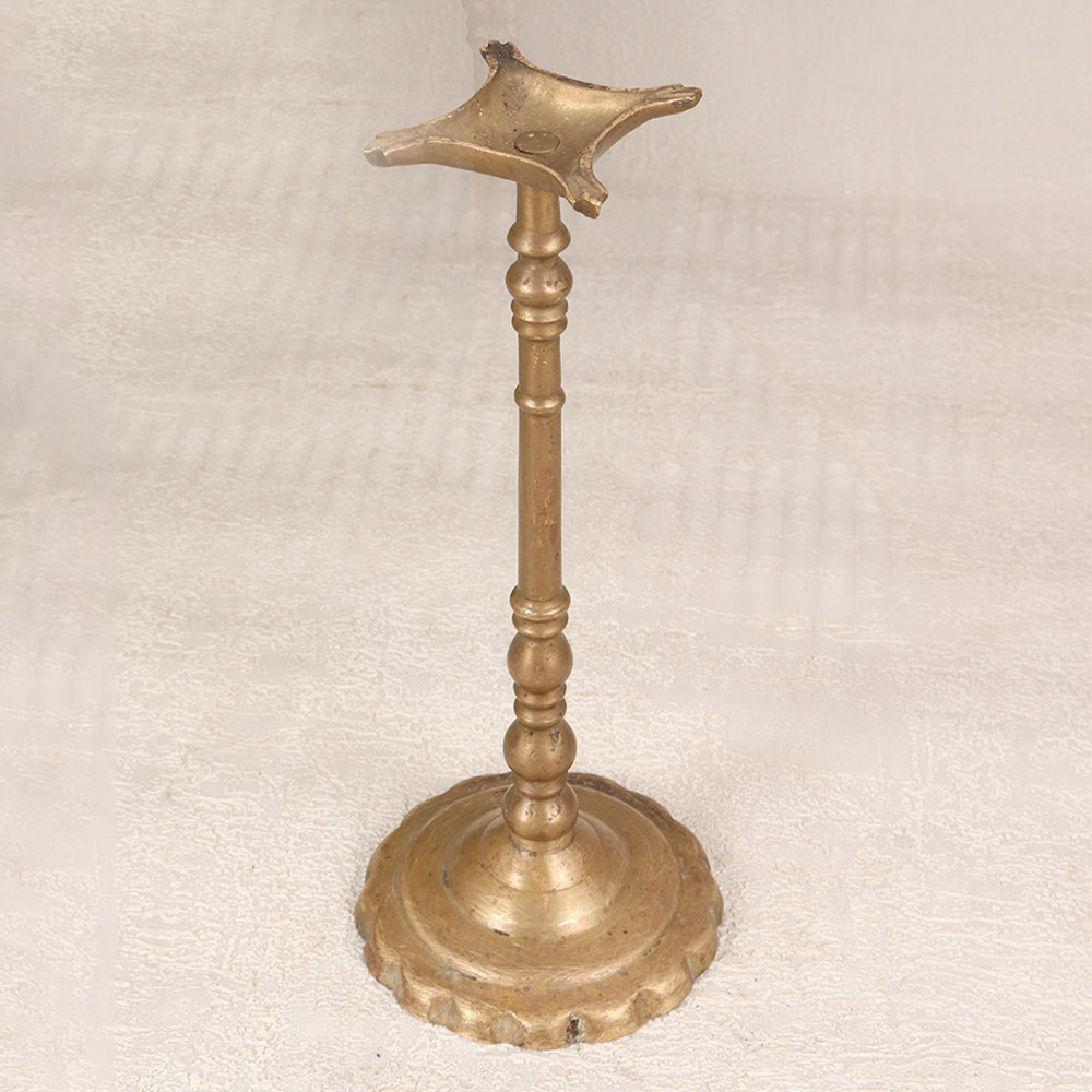Immerse yourself in the timeless charm of this vintage brass oil lamp that is a testament to the rich heritage of South Indian Art. Handmade by professional Indian artisans, this masterpiece showcases the intricate craftsmanship that has been passed down through generations. The lamp's antique brown finish adds a touch of nostalgia, evoking the elegance of bygone eras. Designed to hold four jyots, this brass oil lamp creates a warm and serene ambiance, perfect for prayer at temples or personal prayer rooms in homes, offices, restaurants, hotels, or cafes. It beckons a sense of spiritual tranquillity as it emanates a soft glow when lit using mustard oil or ghee with cotton wicks. Crafted from high-quality brass, this lamp not only serves as a sacred item for rituals but also stands as a symbol of cultural reverence. Its versatility extends beyond religious ceremonies, making it a striking addition to your vintage collection. Moreover, this timeless piece makes for a thoughtful and meaningful gift, adding a touch of tradition to special, festive, or auspicious occasions. Embrace the spiritual essence and aesthetic allure of this vintage brass oil lamp, a radiant reflection of cultural artistry and devotion.