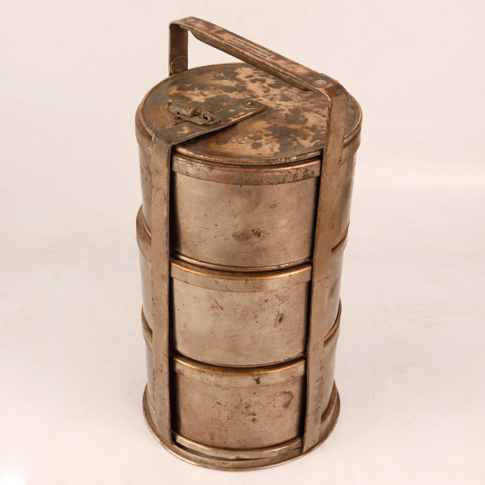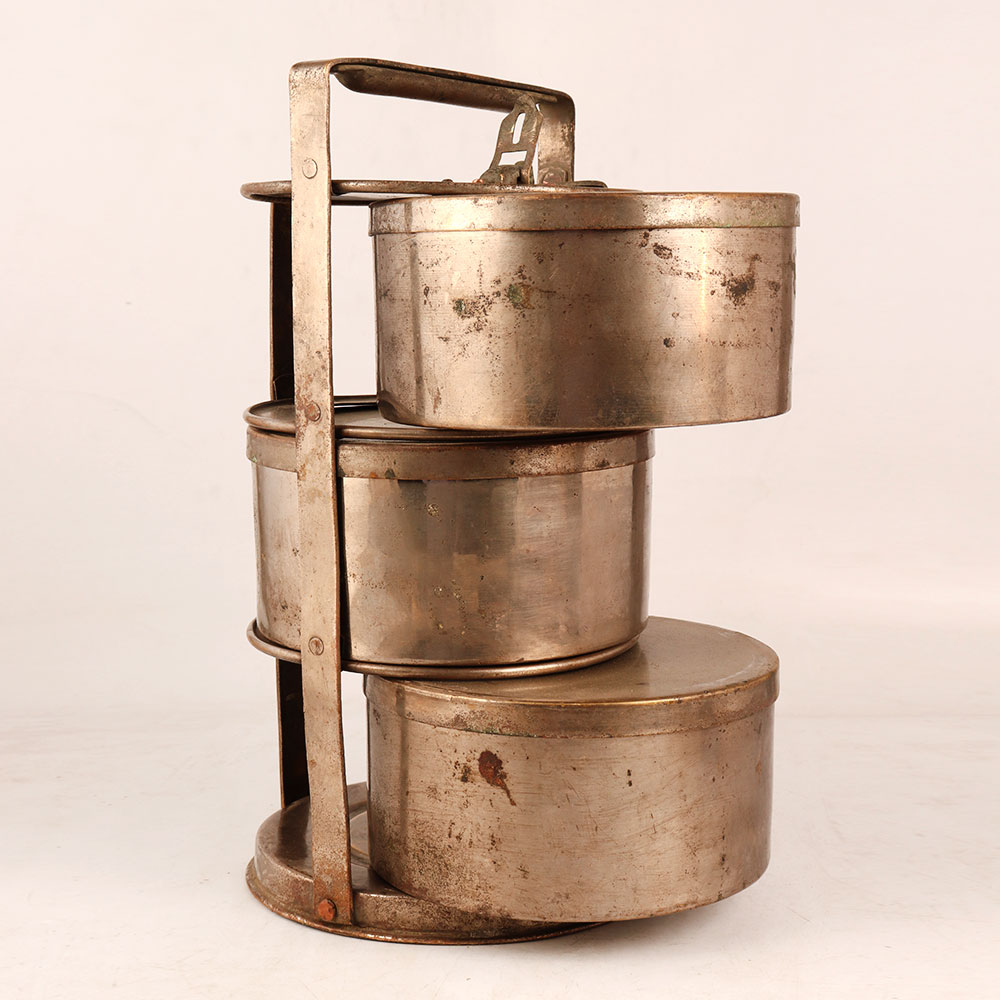 Buy a vintage brass tiffin or lunch box online that enhances your space with its timeless charm. With three spacious compartments, this used item boasts both functionality and aesthetic appeal. Crafted from high-quality brass, its antique brown finish exudes an aura of nostalgia and elegance. Handmade by highly skilled and experienced Indian craftsmen, this piece carries the legacy of traditional craftsmanship. This vintage Tiffin can be seamlessly incorporated into various settings – whether it's your home, office, restaurant, hotel, or cafe. Its exquisite design invites conversations and adds a touch of history to any space. Use it as a captivating decoration or proudly display it at exhibitions to showcase its unique character. As a valuable addition to your vintage collection, it embodies the bygone eras aesthetics. Celebrate special occasions by gifting this Tiffin to your loved ones. Its timeless appeal makes it an ideal present for festive or auspicious events. With its blend of functionality and artistry, this vintage brass Tiffin transcends time, bringing a slice of history into your modern world.